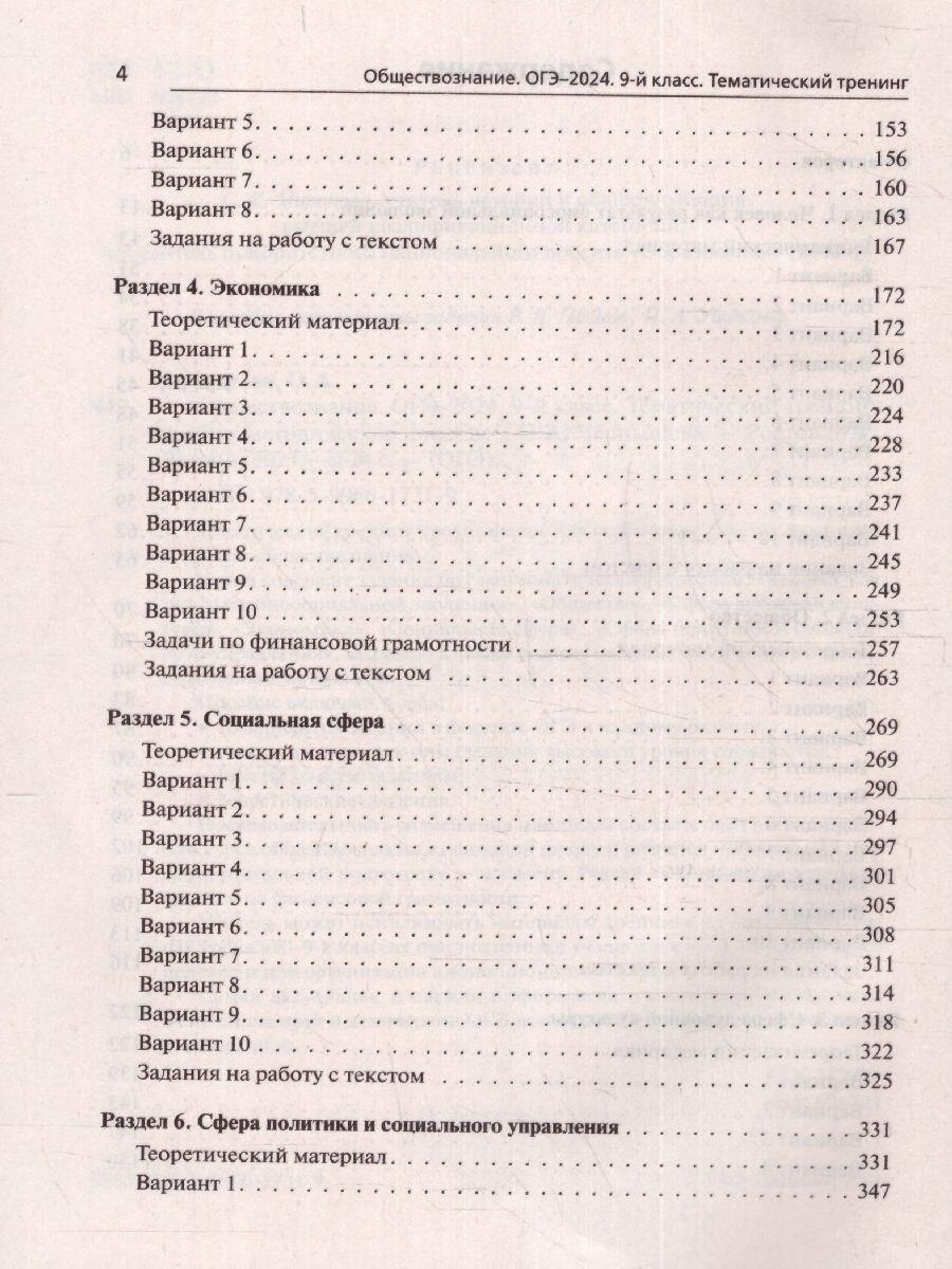 Последовательность размещения материала соответствует логике изучения курса обществознания в основной школе и является оптимальной при самостоятельной подготовке к экзамену. Раздел «Экономика» содержит задания по финансовой грамотности.