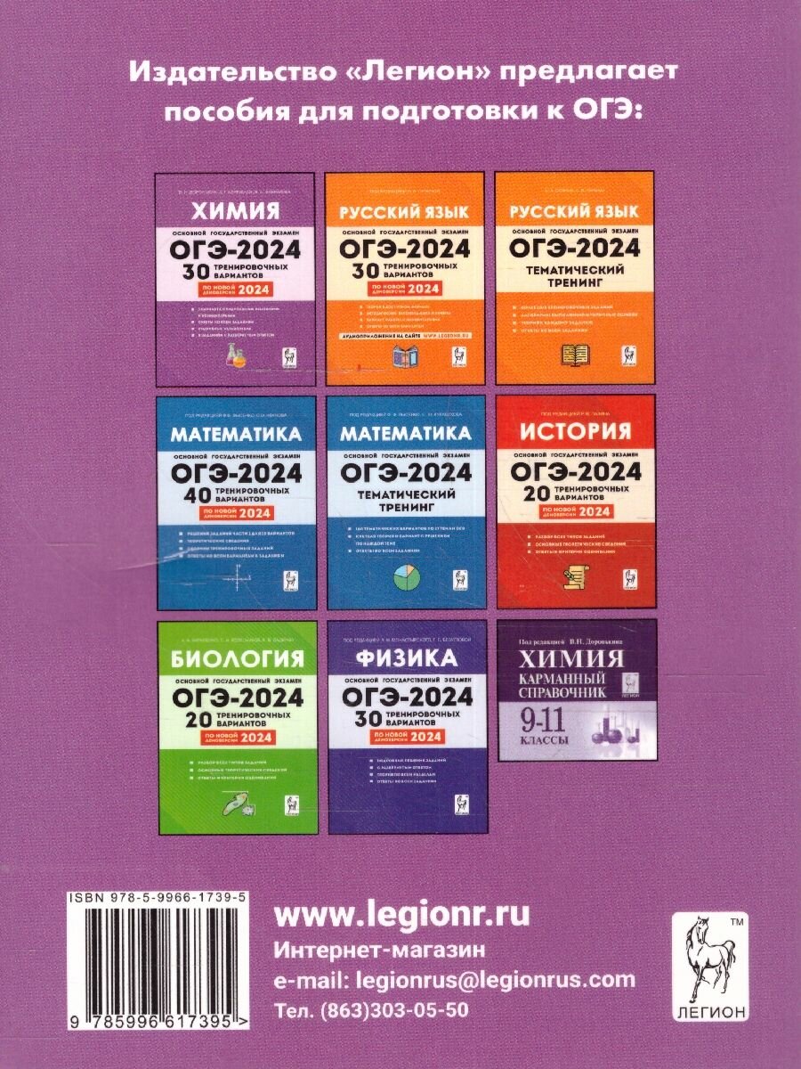 Сервис сравнения цен СкидкаГИД предлагает сравнить цены на товар «Книга: ОГЭ-2024. Химия. 9 класс. Тематический тренинг. Все типы заданий (Доронькин Владимир Николаевич, Февралева Валентина Александровна, Бережная Александра Григорьевна); Легион, 2023»