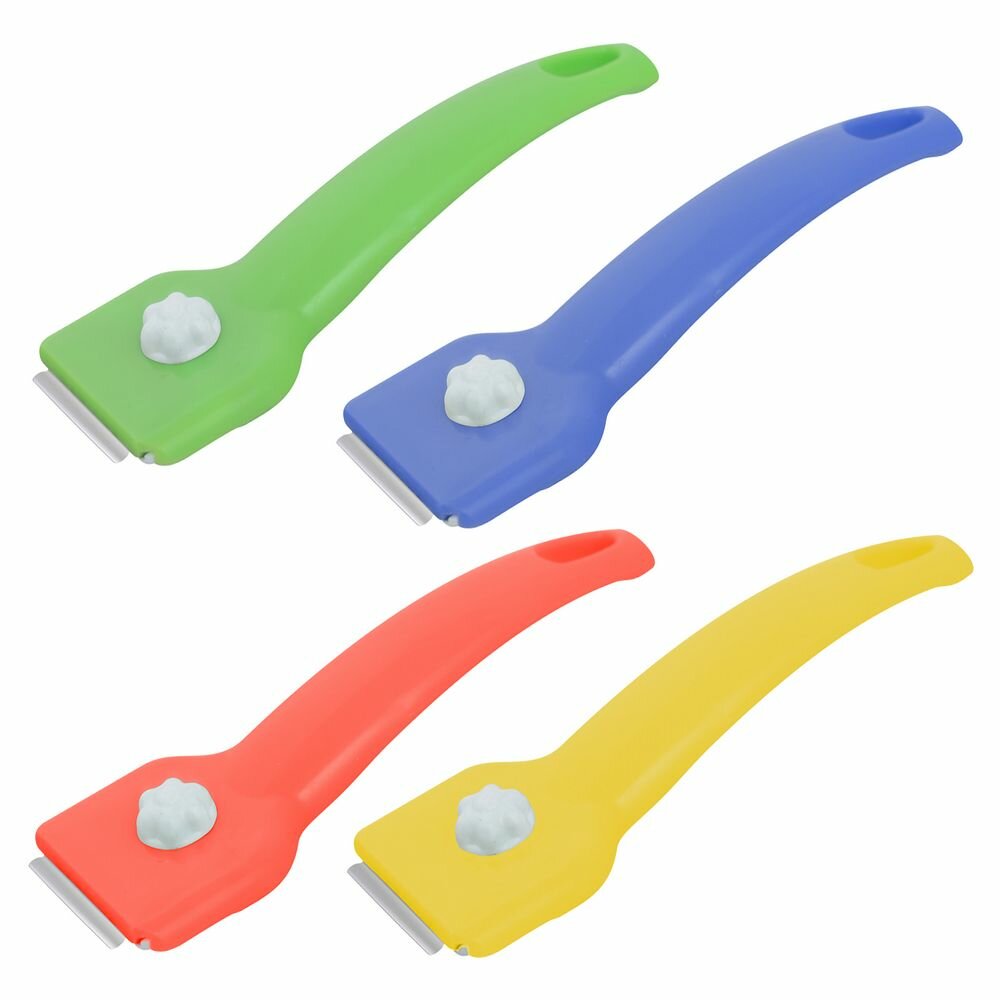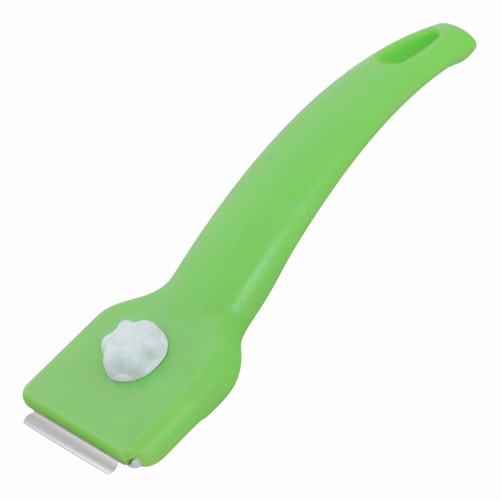 Поддерживайте чистоту стеклокерамической плиты с помощью скребка с выдвижным лезвием. Скребок сэкономит время, затрачиваемое на уборку, сбережет ваши силы. Инструмент поможет бережно очистить любые загрязнения с плиты, кафеля и других кухонных поверхностей, не поцарапав их. Изделие оснащено двухсторонним сменным лезвием, которое выдвигается и закрепляется с помощью гайки-фиксатора. При затуплении одной стороны лезвия, его можно перевернуть и пользоваться другой стороной. Для безопасного хранения изделия задвиньте лезвие внутрь корпуса и зафиксируйте гайкой. Внимание! Беречь от детей. Во избежание порезов, соблюдать осторожность при мытье и смене лезвий. После использования разберите скребок, промойте лезвие и сам скребок в проточной воде. Просушите и соберите для хранения, задвинув лезвие и зафиксировав гайкой. Изготовлено: лезвие из коррозионностойкой (нержавеющей) стали, корпус скребка из пластмассы (полипропилен). Для скребка подходит обычный набор сменных лезвий для бритья. Товар представлен в ассортименте, без возможности выбора цвета.