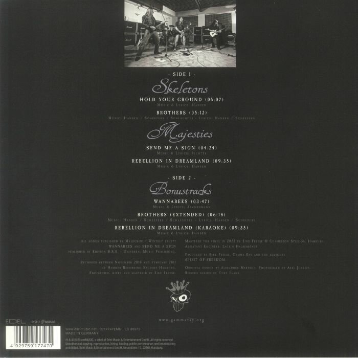 Ограниченный тираж прозрачных виниловых пластинок. Skeletons & Majesties - мини-альбом 2011 года немецкой пауэр-метал-группы Gamma Ray. Песни были записаны в период с ноября 2010 по февраль 2011 года на студии Hammer Recording Studios в Гамбурге.
