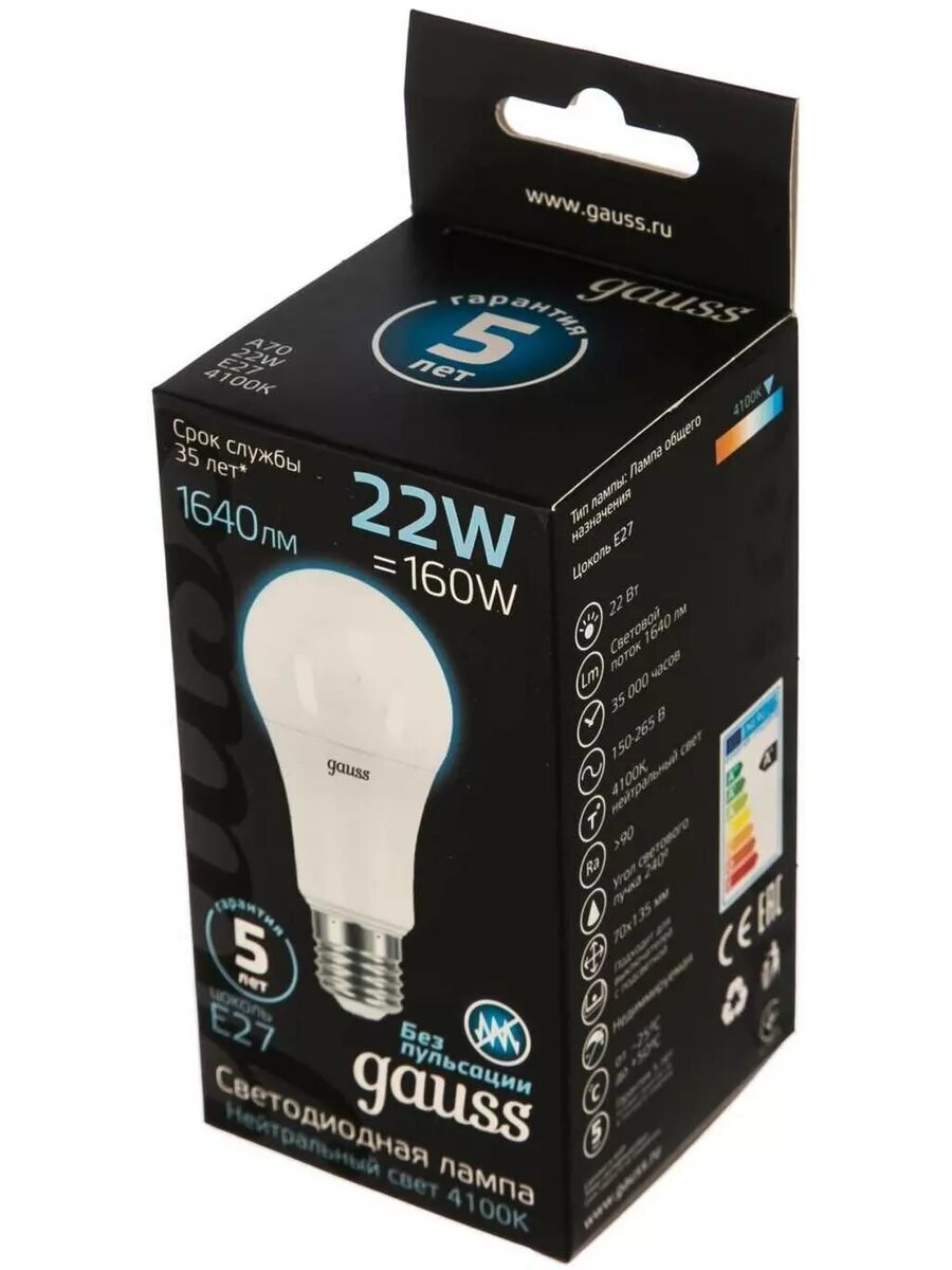 лампа Gauss 22Вт E27 2000Лм LED 4100К груша (102502222)