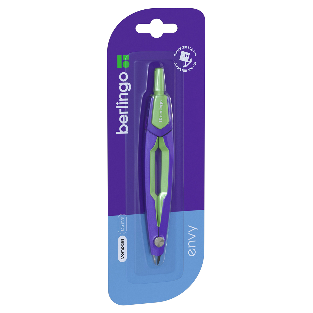 Циркули Berlingo "Envy" выполнены из прочного цинкового сплава. Отличаются иглой со специальной заточкой и эргономичной головкой циркуля, что делает процесс использования более безопасным и удобным для детей. Дизайн выполнен в ярких фирменных цветах бренда с контрастными деталями.