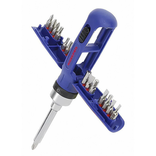 Профессиональная отвертка с 72-зубой трещоткой используется для работ с крепежом в процессе ремонта и монтажа. В наборе поставляется 14 особо прочных бит. Удобная двухкомпонентная рукоятка обеспечивает комфортное использование. Биты хранятся в скрытых отсеках рукоятки и доступны для быстрой замены. Биты выполнены из хромованадиевой стали.