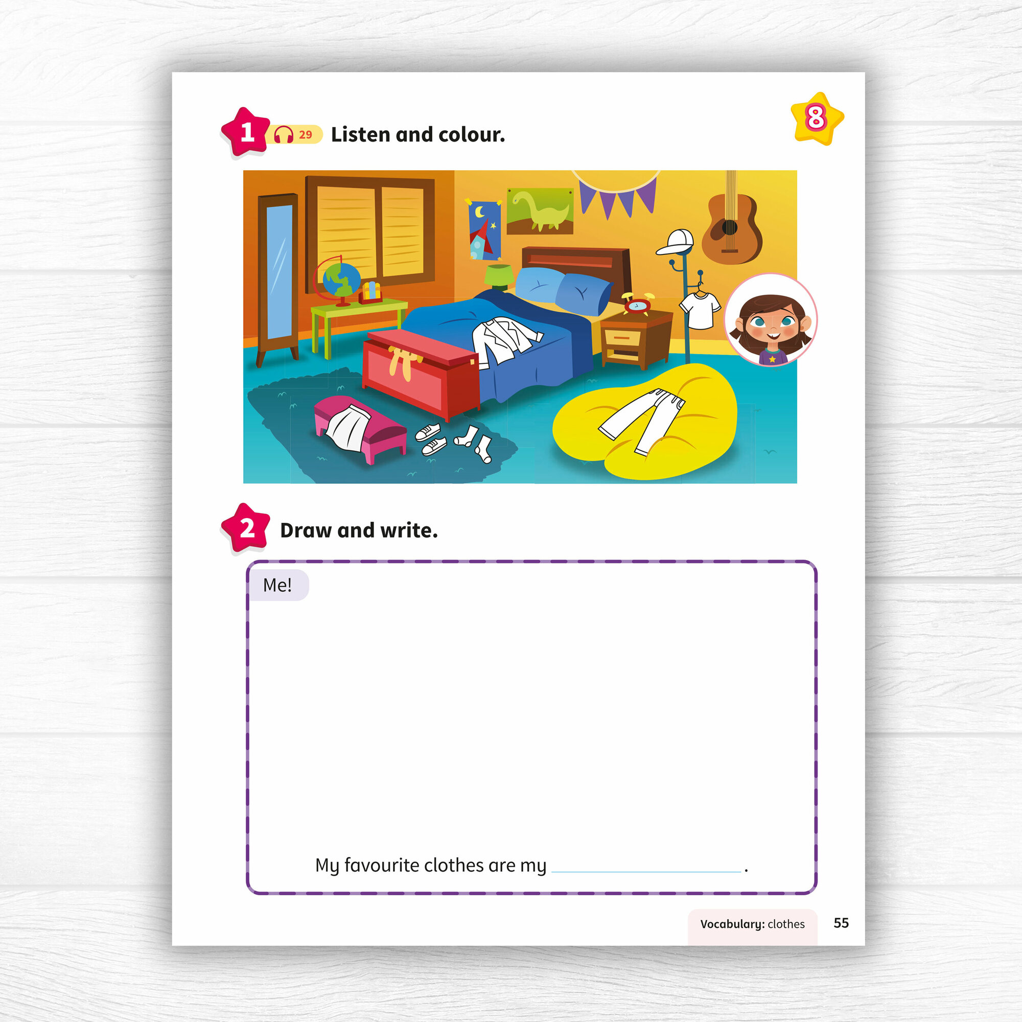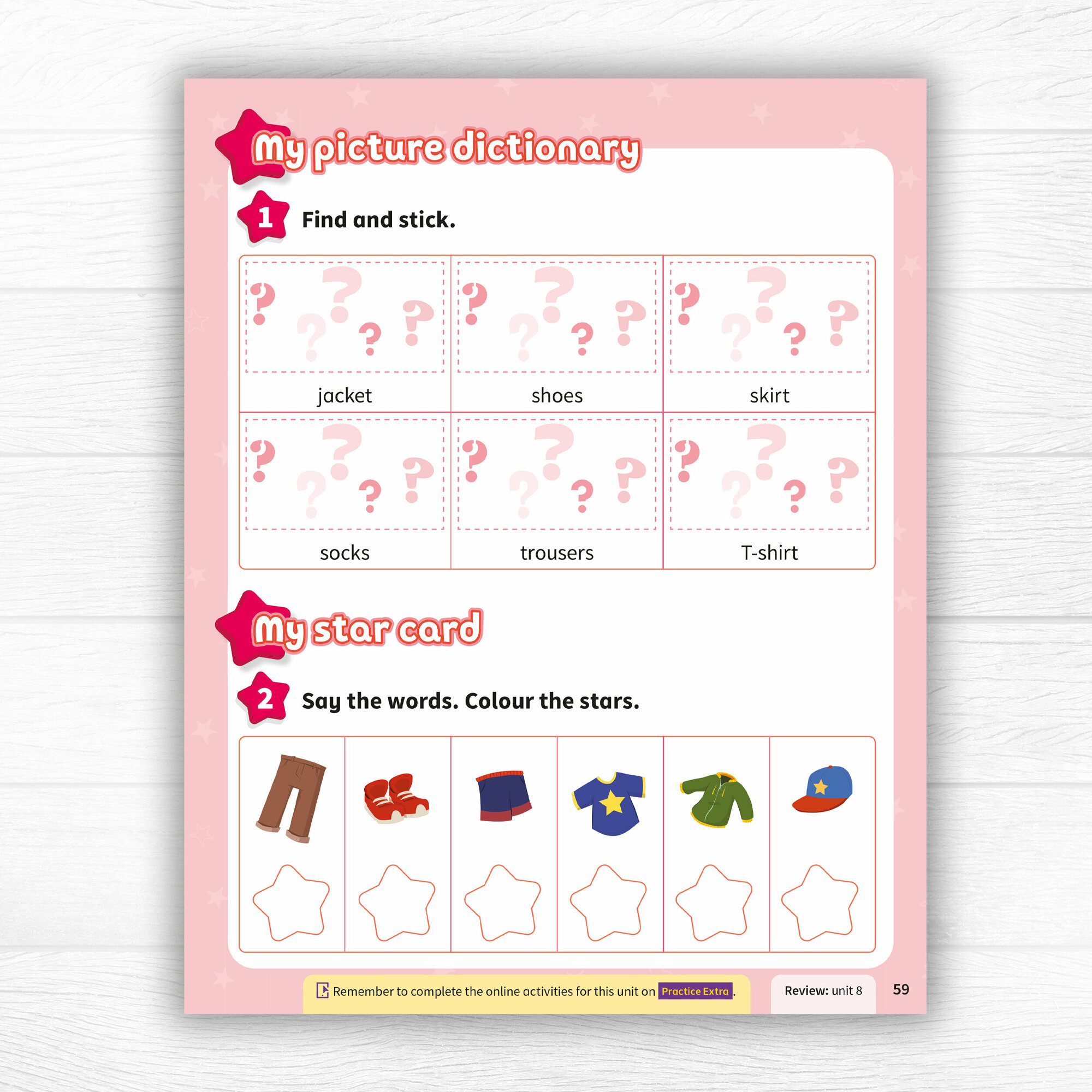 The Activity Book, now in colour, covers the target language from the Pupil's Book. One exam practice activity per unit familiarises children with the format of the Cambridge English Qualification for young learners. A unique access code inside the front cover unlocks extra language practice, games and the course audio in an online learning platform.