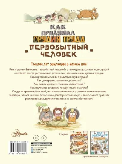 Серия книг «Внимание: первобытный человек!» с помощью ярких иллюстраций и увлекательного текста рассказывает об одежде, питании, жилье и занятиях первобытных людей.