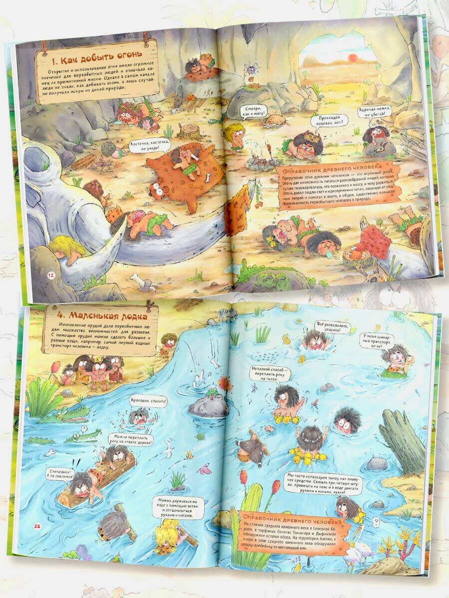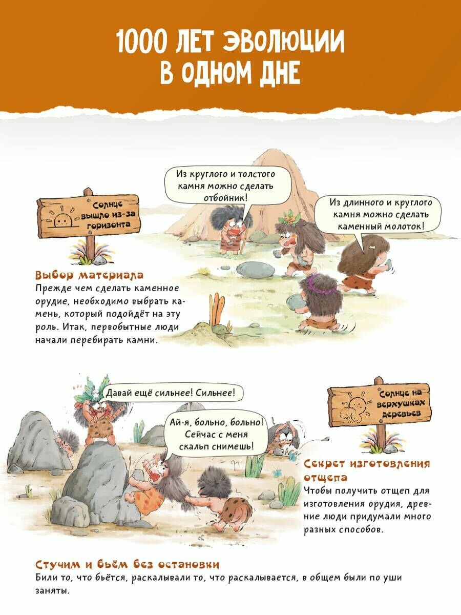 Книга, которая сумеет заинтересовать не только ребенка, но и любого взрослого. Куплена была на подарок для ребенка, но читать ее стали даже родители. Твердый переплет, красочные страницы, очень интересная информация о жизни древних людей и постепенном изготовлении и усовершенствовании орудий труда. Все разделено по эпохам. Понравилось, что это не затянутая историческая справка, а легкое и интересное занимательное повествование, что особенно важно в детских книгах.