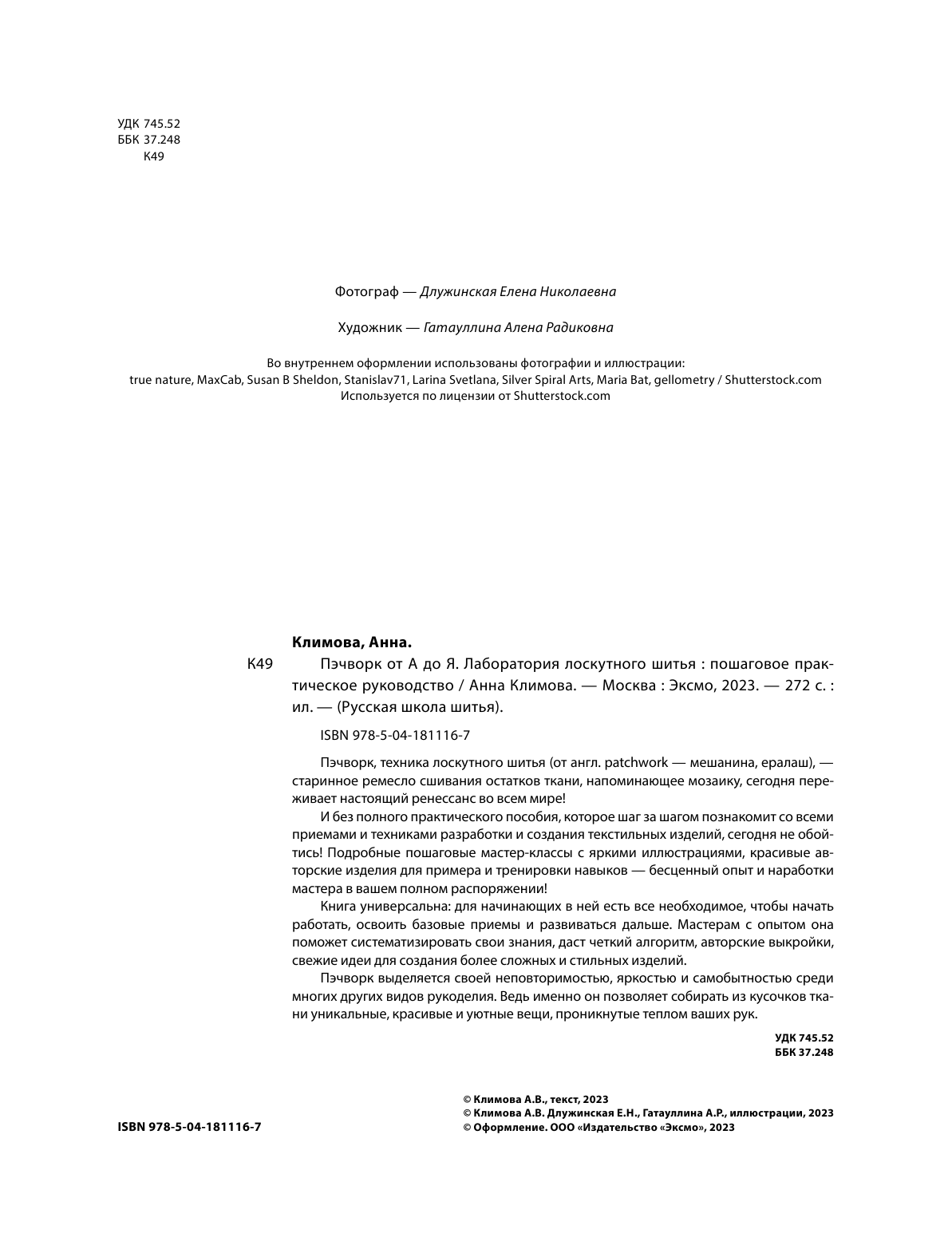 ПЭЧВОРК от А до Я. Лаборатория лоскутного шитья. Пошаговое практическое руководство (Климова Анна); ООО "Издательство "Эксмо", 2023