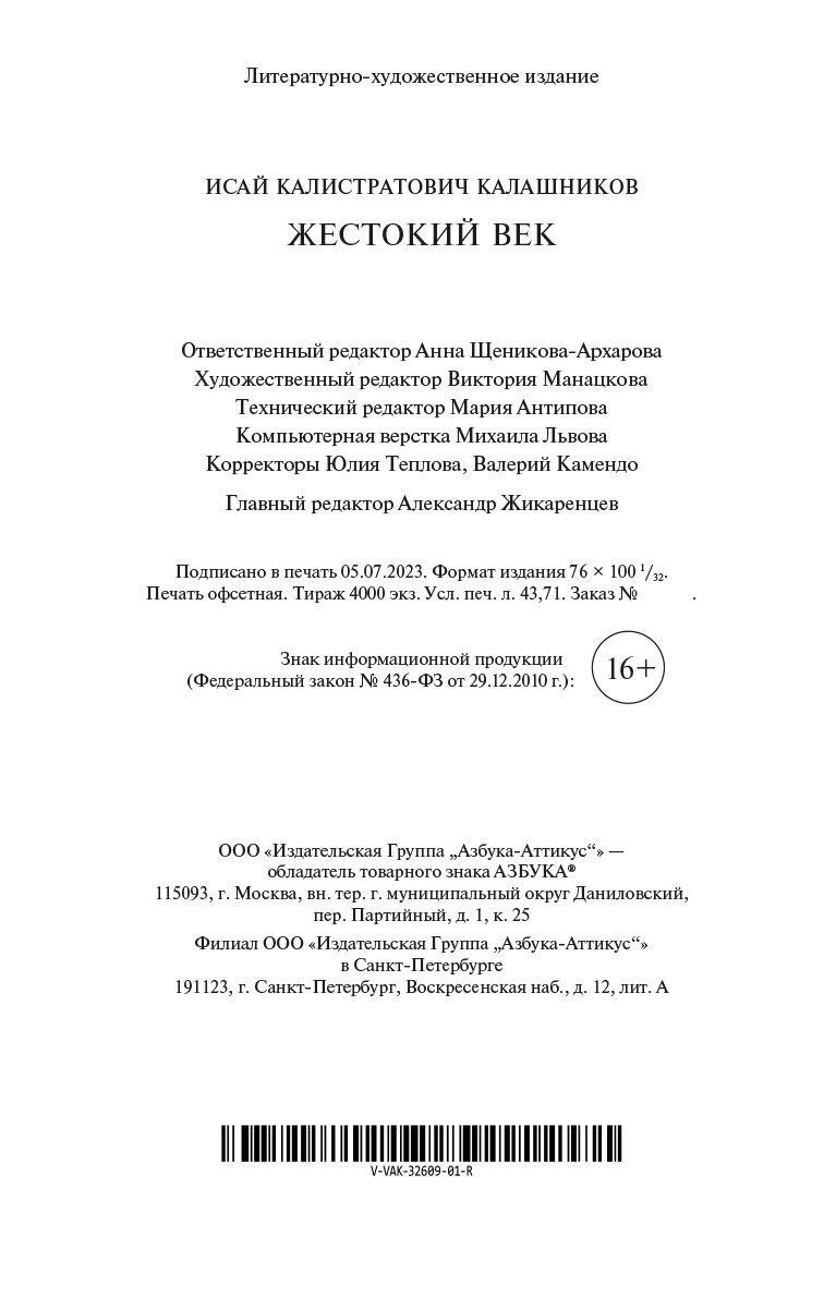 Книга: Жестокий век (Калашников Исай Калистратович); Азбука, 2023