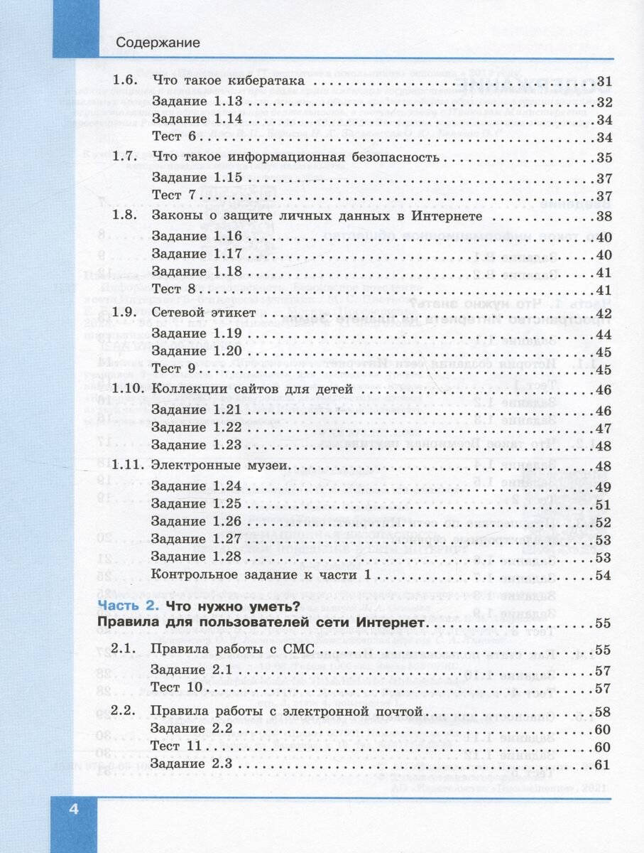 Учебник входит в серию "Информационная безопасность" для учащихся 2–11 классов. Предназначено для проведения уроков информационной безопасности в 5–6 классах (в рамках курсов "Информатика", "ОБЖ", во внеурочной деятельности) и состоит из двух частей: что нужно знать о сети Интернет и как использовать её ресурсы при самостоятельной работе.
