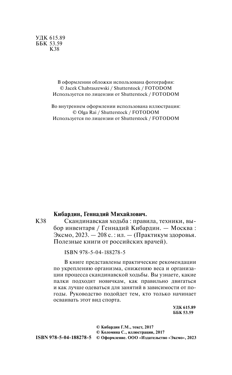 Скандинавская ходьба: правила техники выбор инвентаря (Кибардин Геннадий Михайлович); ООО "Издательство "Эксмо", 2023