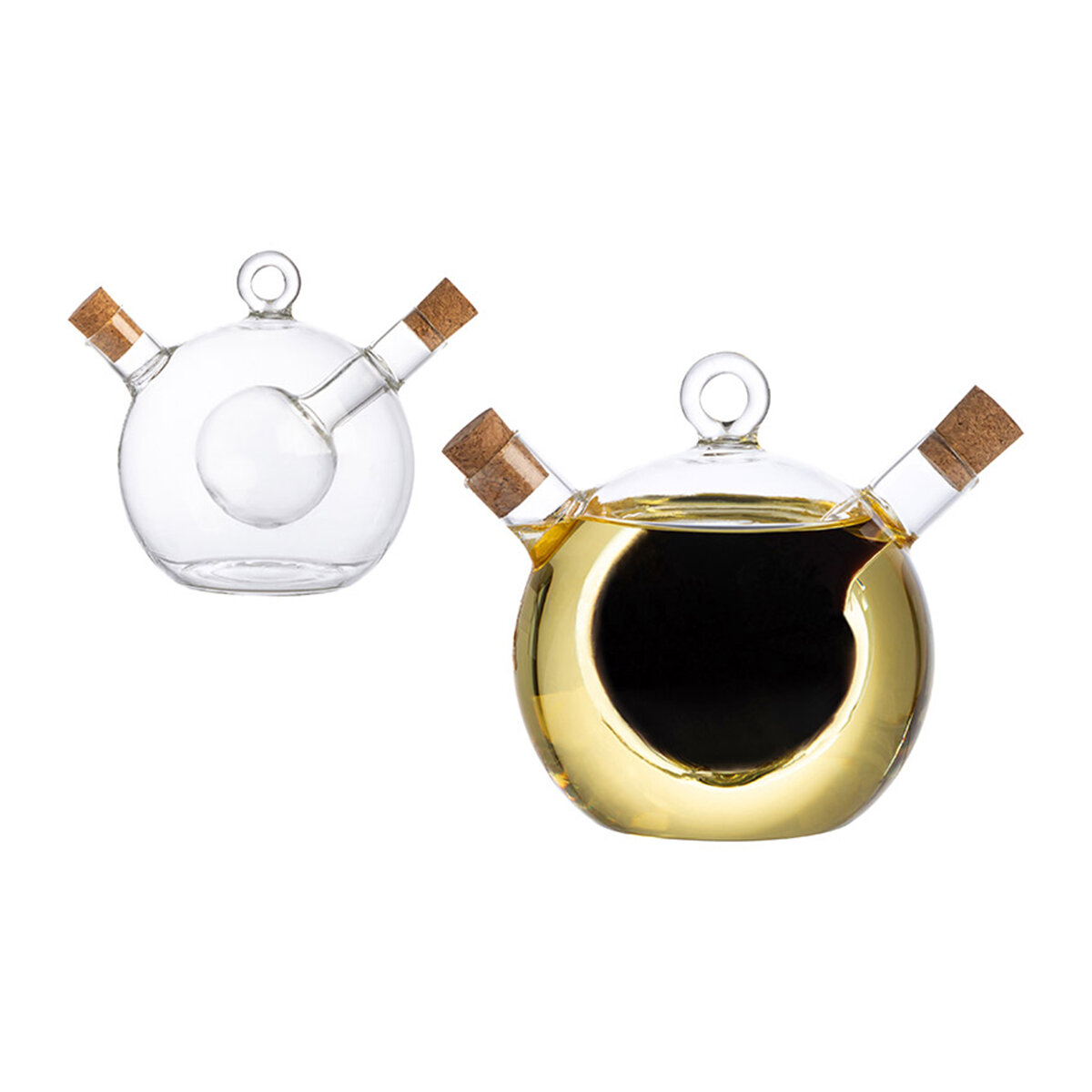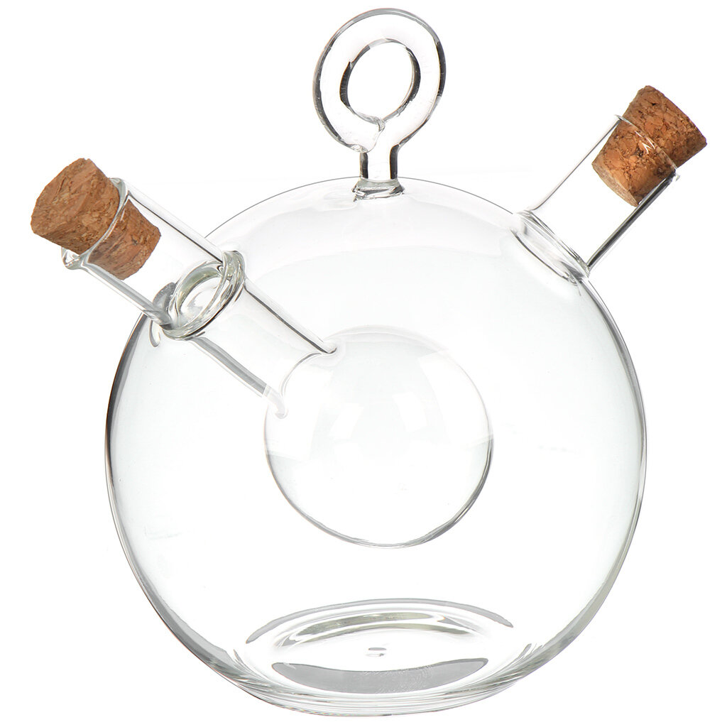 Практичная и эстетичная емкость для хранения масла и уксуса идеальна для подачи на стол и может использоваться как при приготовлении блюд, так и при украшении обеденного стола.Матариал: боросиликатное стекло, пробка. Размер: 10*10*9 см. Объем: 350 мл - ёмкость для масла, 50 мл - ёмкость для уксуса. Цветная коробка+пузырчатая пленка.