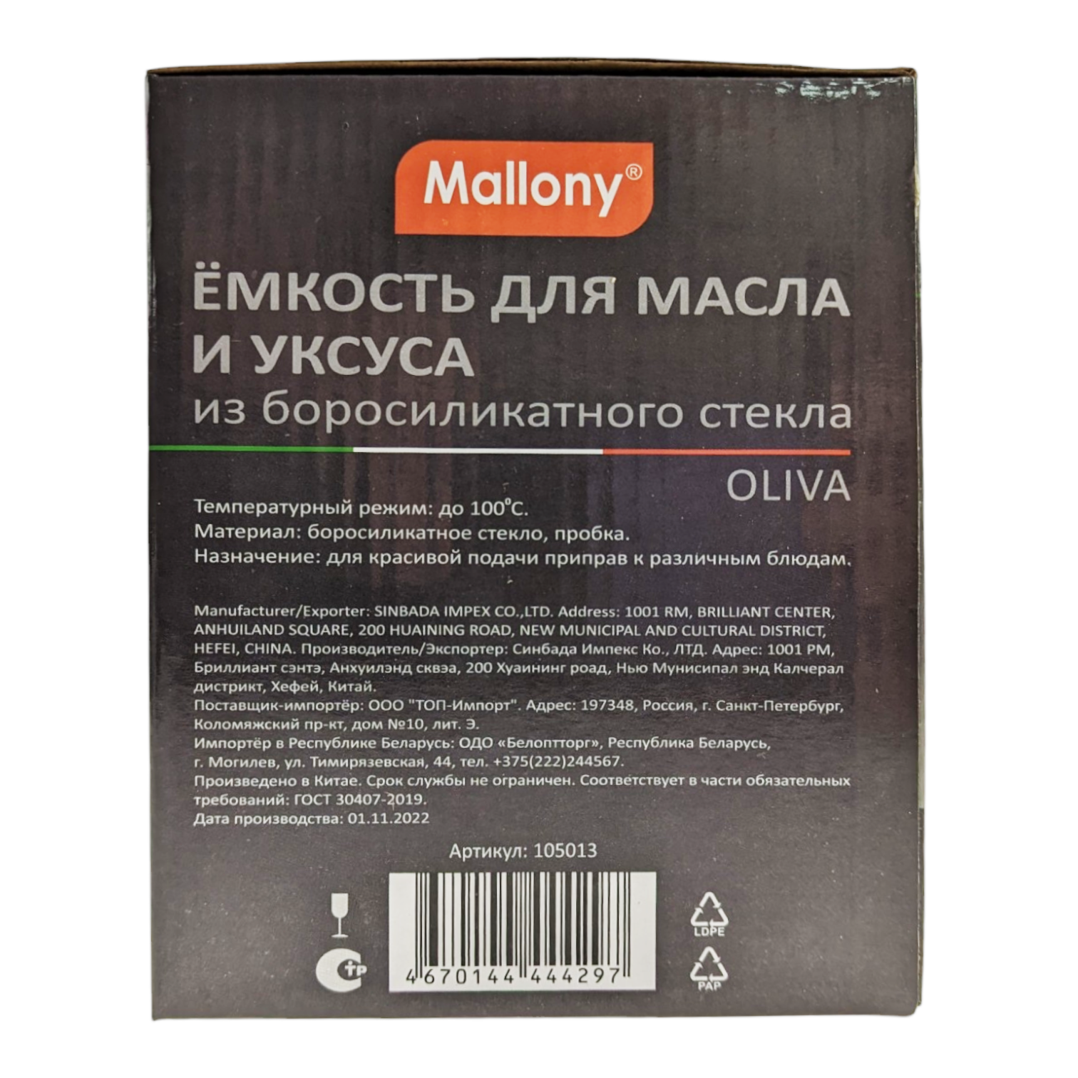 На сегодняшний день товар «Емкость для масла и уксуса Mallony Oliva 350+50мл Sinbada Impex» можно купить с кешбеком в 1 магазине: Яндекс.Маркет