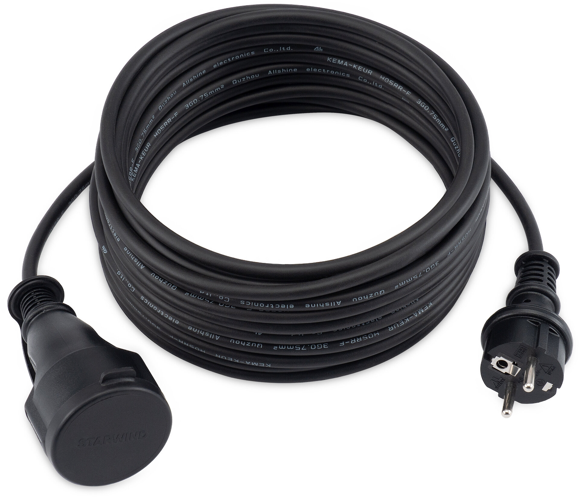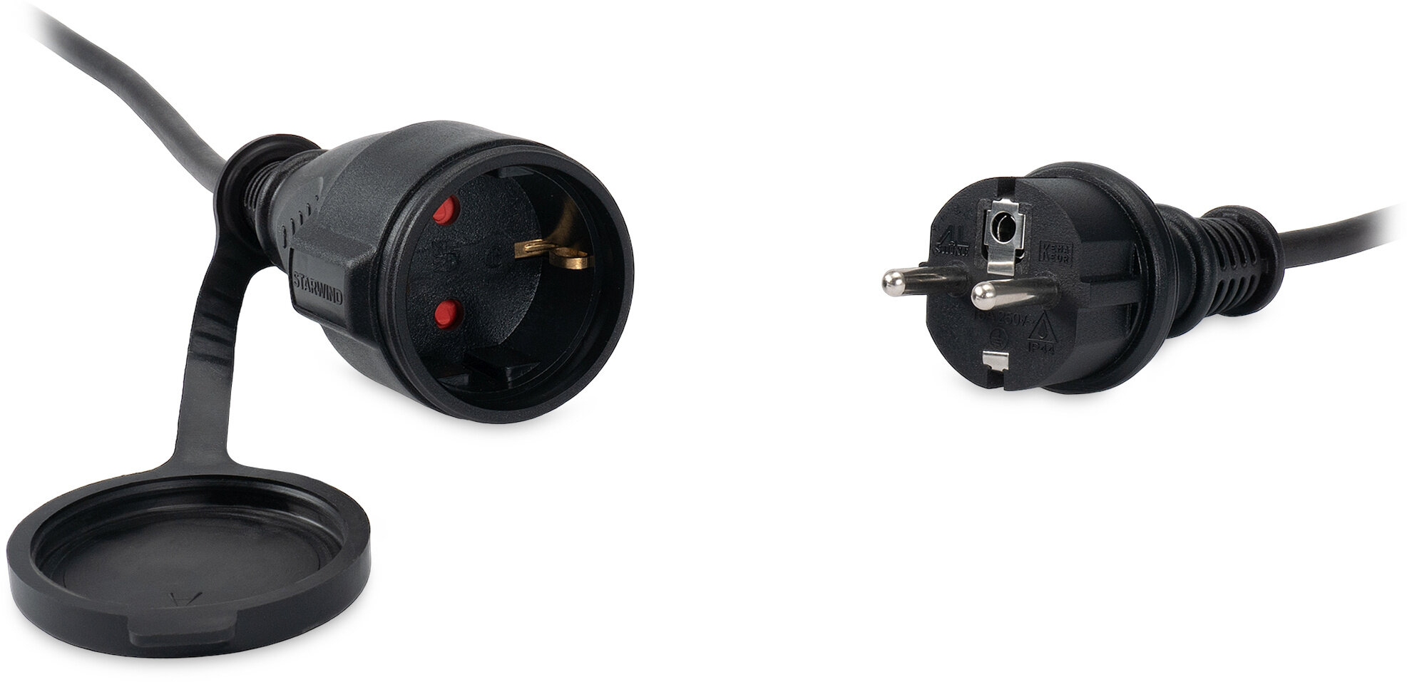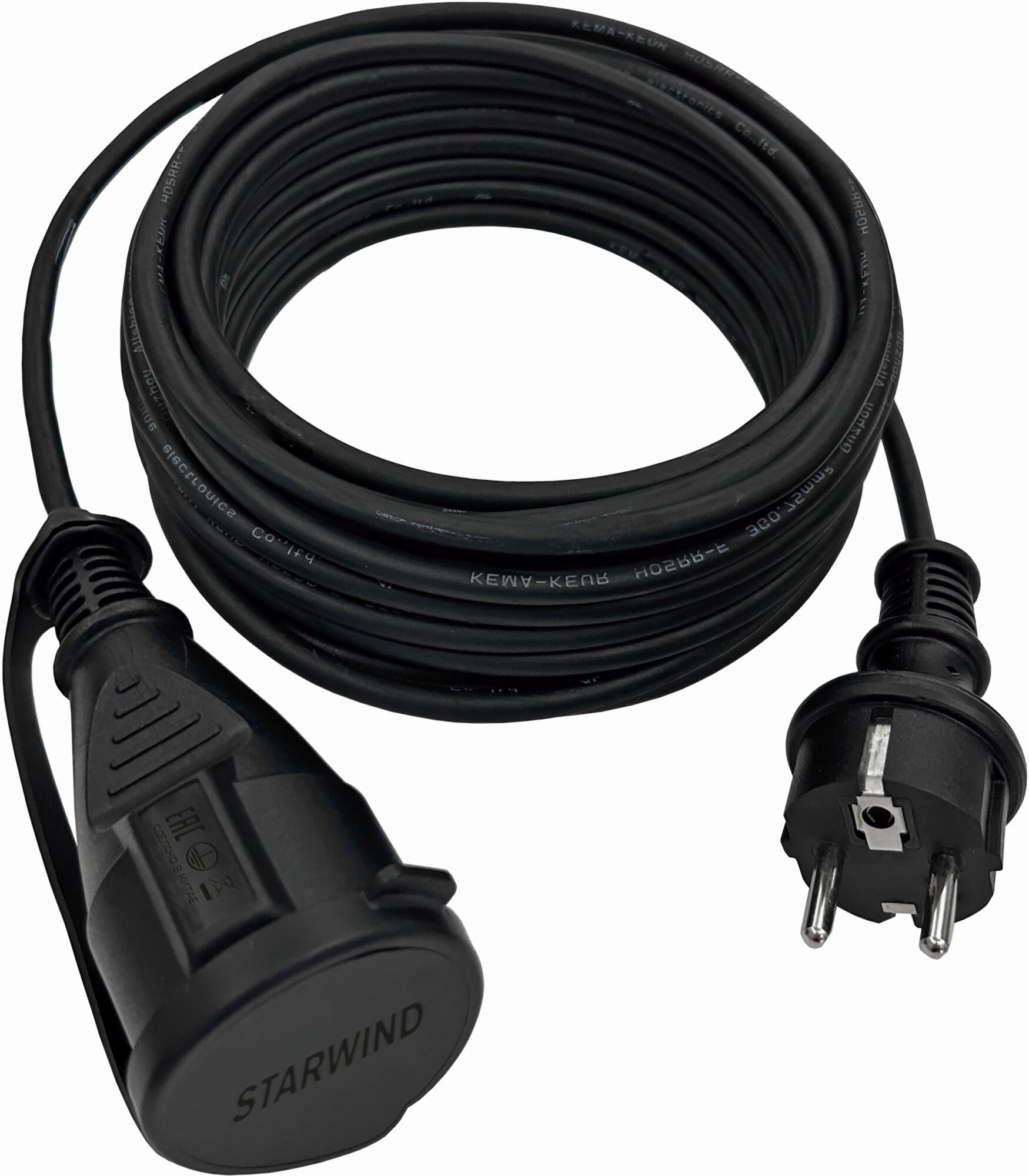 Удлинитель силовой Starwind , кабель 3x0.75кв.мм КГ, 1розет., длина 10м, ток до 16A, без катушки, черный