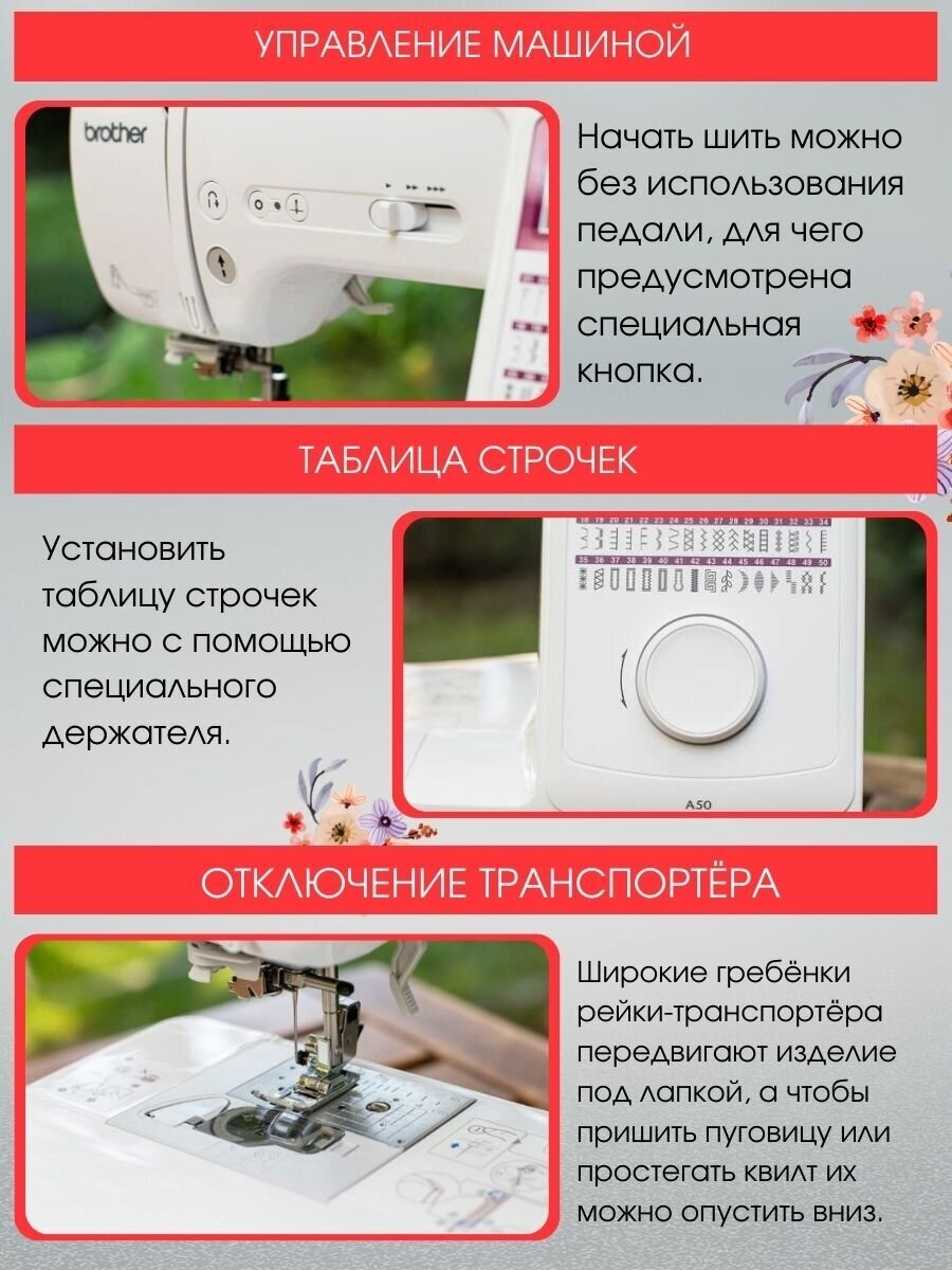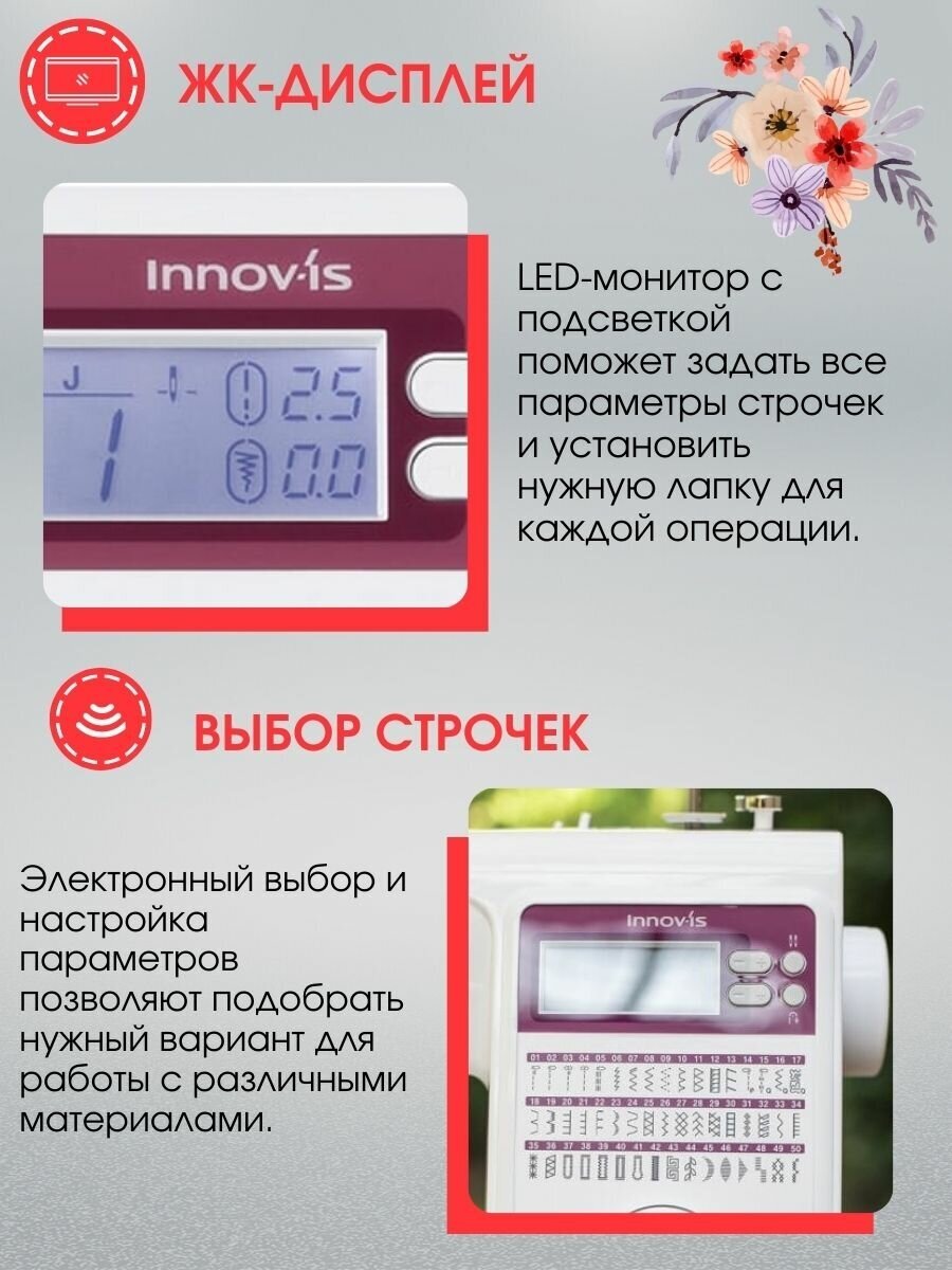 Электронная швейная машина Brother Innov-is предлагает богатый выбор настроек и операций, как для утилитарного шитья, так и для декорирования изделий.