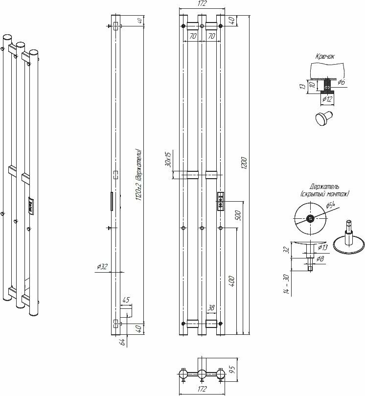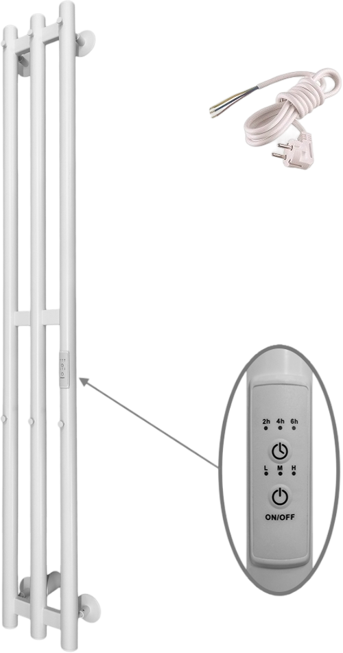 Данный полотенцесушитель имеет два вида подключения: подключение стандартным кабелем с вилкой 220 Вольт и скрытое подключение к заранее подведенной на месте установки проводке. Во втором случае необходимо обжать жилы проводки дополнительными клемниками(идут в комплекте) и подсоединить их к жилам полотенцесушителя, согласно цветовой разметки.