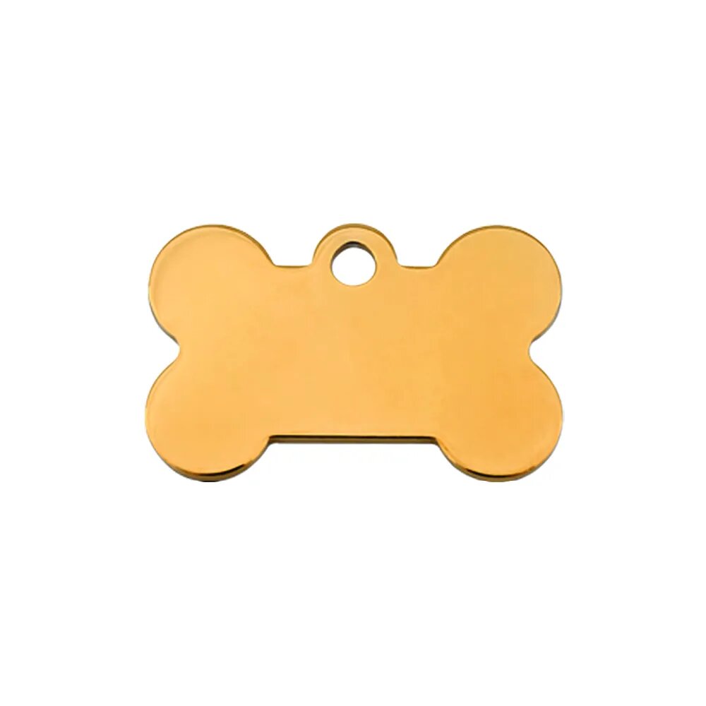 Адресник My Family Basic GOLD BoneАдресник в виде косточки золотистого цвета, выполнен из латуни с 24-каратным позолоченным покрытием и зеркальной полировкой, что делает его более надежным и долговечным, материал не вызывает аллергию. Снабжен прочным металлическим кольцом для крепления к ошейнику или шлейке. На лицевой и оборотной стороне имеется по четыре строки для нанесения гравировки. - размер: S 3 x 1,9 см- размер: L 3,8 x 2.5 см- бесплатная гравировка до 4 строк (товары с выполненной гравировкой обмену и возврату не подлежат)- оснащен кольцом- Сделано в Италии
