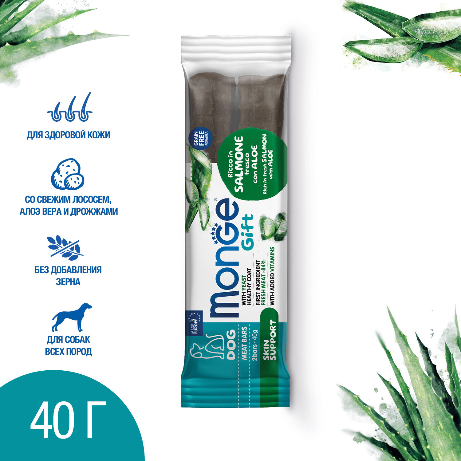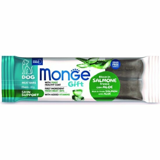Monge Лакомство для здоровья кожи собак Мясные батончики лосось алоэ вера и дрожжи 2 шт. в упаковке