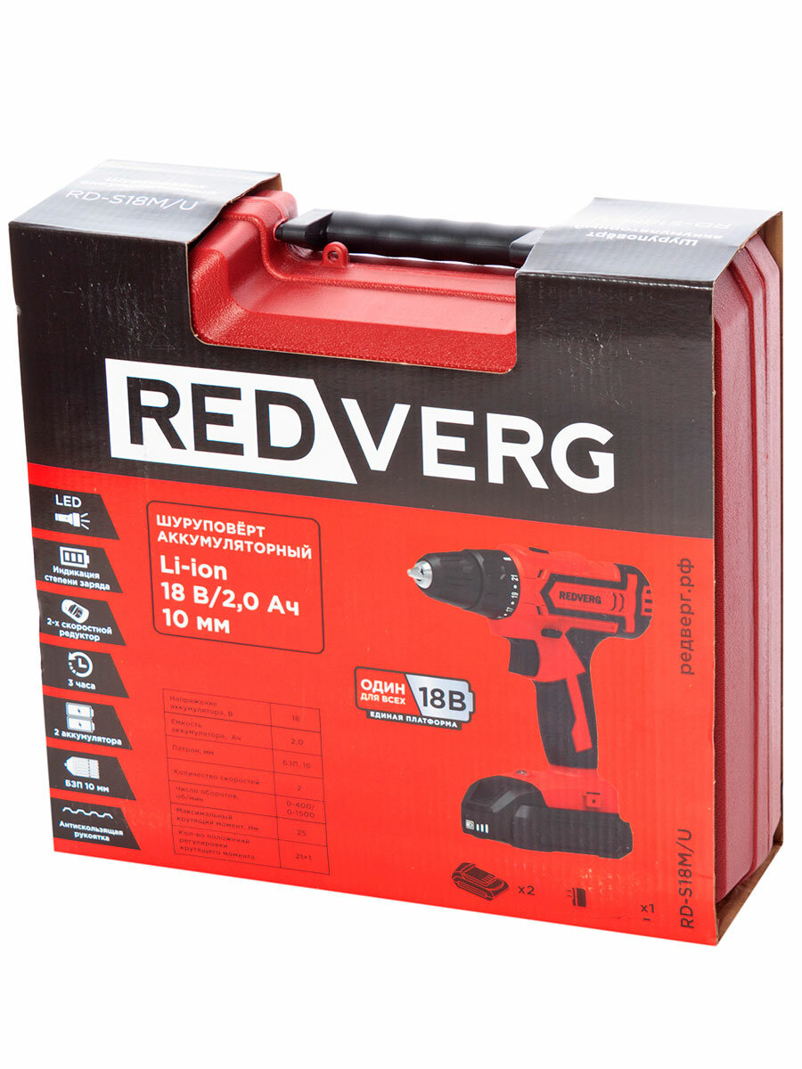 - Единая аккумуляторная система REDVERG 18В - позволяет использовать один аккумулятор с различным электроинструментом одной серии