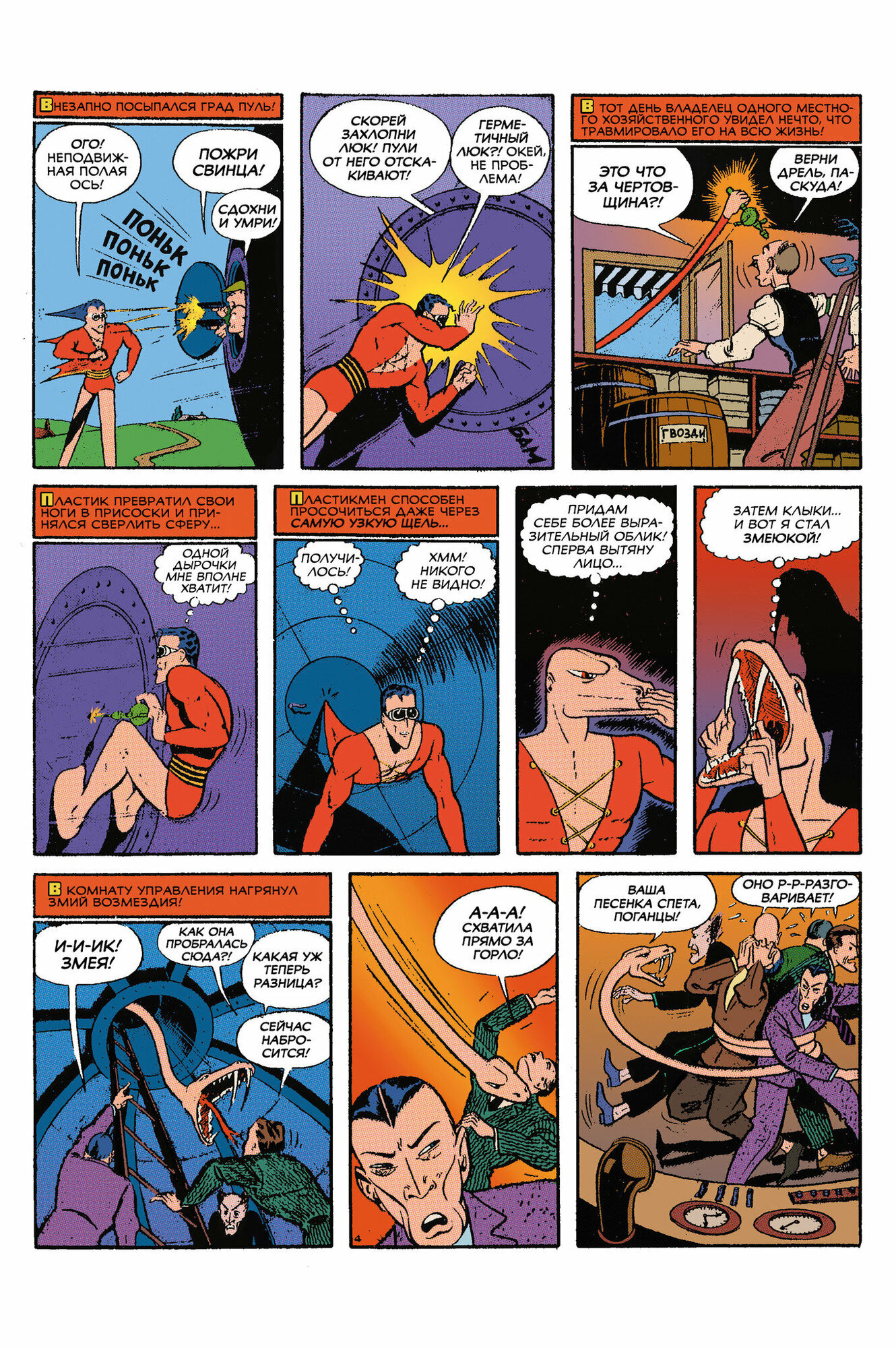 Пластикмена можно считать одним из первых комических героев в криминальных комиксах! Его суперспособность – растягиваться и изменять свою форму. И хотя жизнь Джека Коула, создателя гибкого паладина, едва ли можно назвать весёлой, он умел хорошенько рассмешить читателя буффонадой и чёрным юмором! Пластикмен – популярный герой анимации, и в России прежде всего известен благодаря мультсериалам «Лига Справедливости» и «Бэтмен: Отважный и смелый». На русском языке комиксы о Пластике выходят впервые. Это уникальная возможность познакомиться и посмеяться вместе с Пластикменом Золотого века!