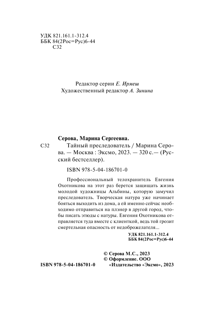Книга: Тайный преследователь (Серова Марина Сергеевна); ООО "Издательство "Эксмо", 2023