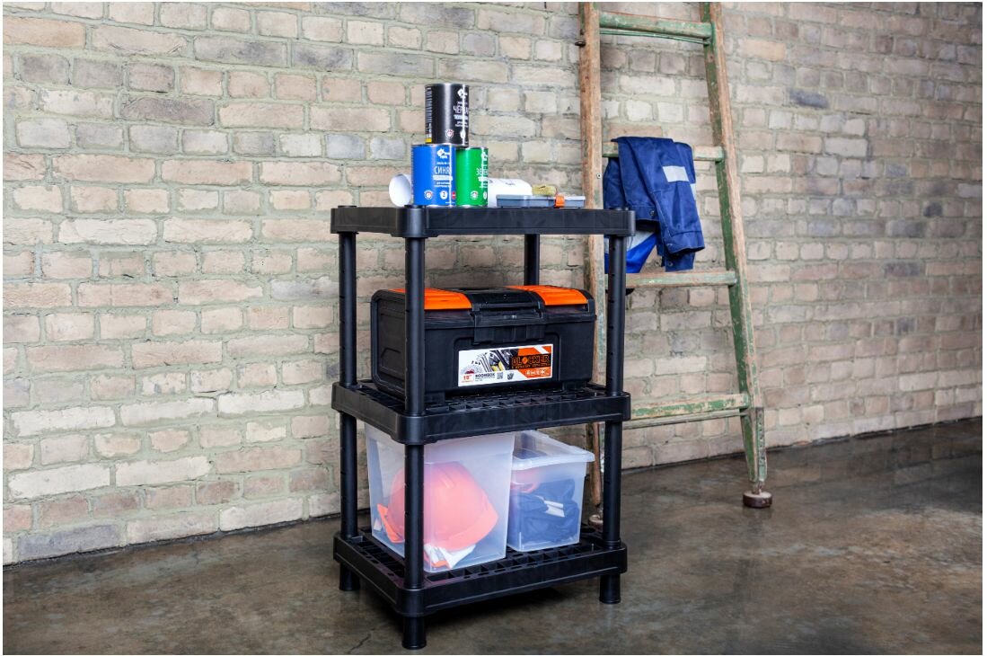 Надёжные и прочные пластиковые стеллажи для организации хранения дома, на даче, в гараже, мастерской. Стеллажи не подвержены коррозии, гниению, деформации. Вентилируемые полки обеспечивают циркуляцию воздуха, что важно при длительном хранении или установке на них электрического оборудования. Полки устанавливаются на необходимую высоту, каждая полка выдерживают нагрузку не менее 45 кг каждая. В комплектации поставляются крепёжные элементы для фиксации стеллажей к стене и между собой. Сборка стеллажа не занимает более 15 минут. Материал изделия: полипропилен.