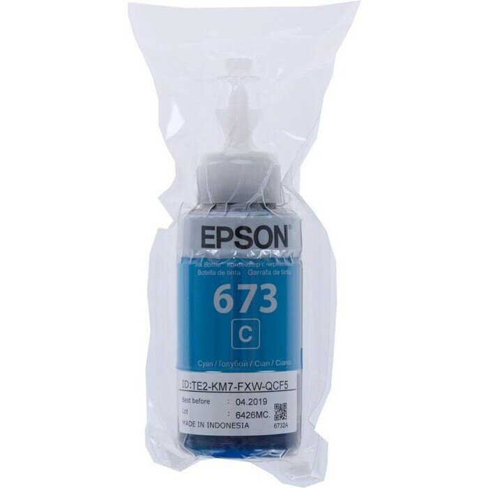 Картридж Epson T673С (C13T67324A) голубой, для EPSON L800/L801/L810/L850, ресурс до 1900 страниц (C13T673298)