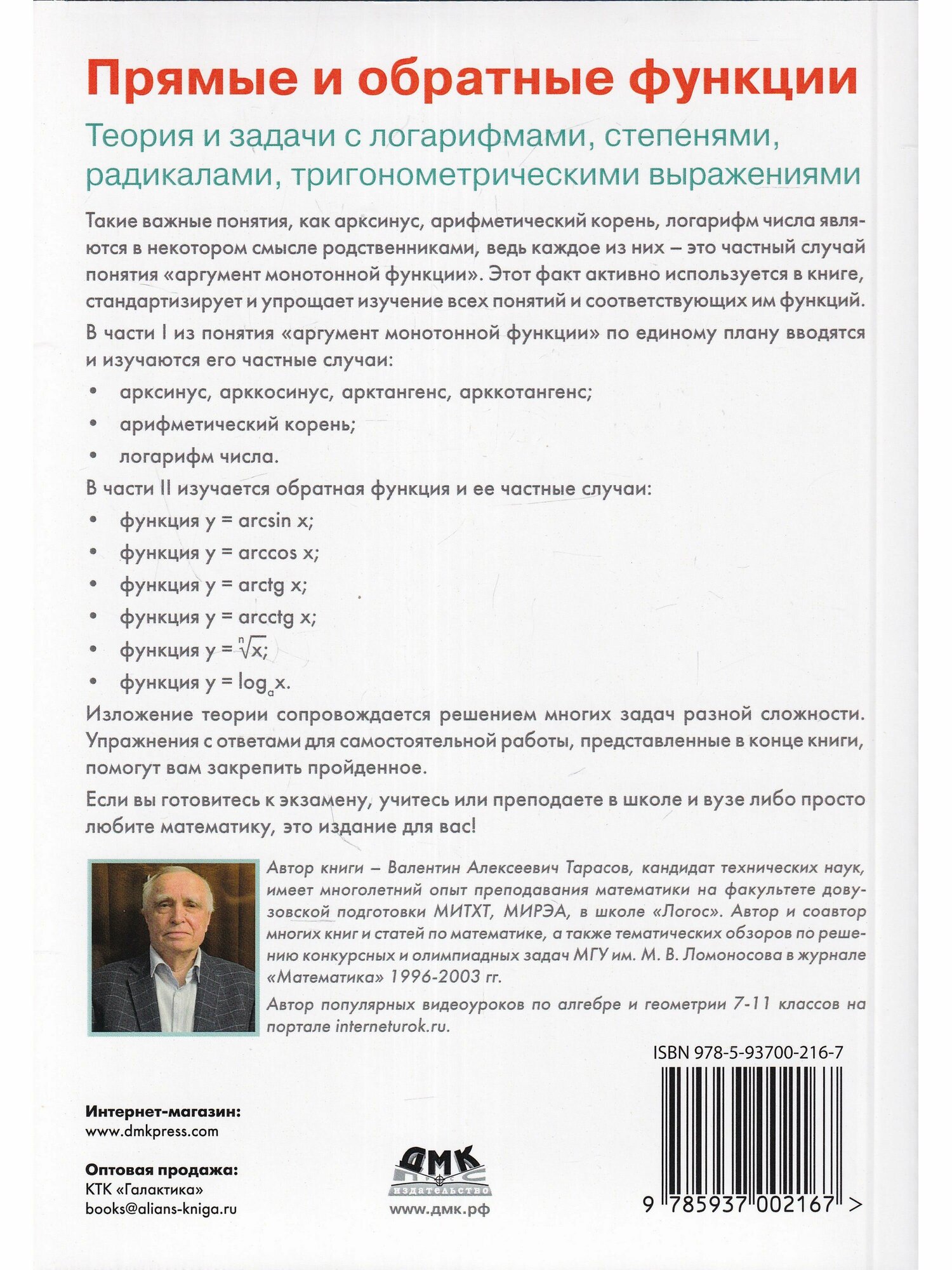 Прямые и обратные функции. Теория и задачи с логарифмами степенями радикалами тригонометрическими (Тарасов В.); ДМК Пресс, ДМК Пресс, 2023