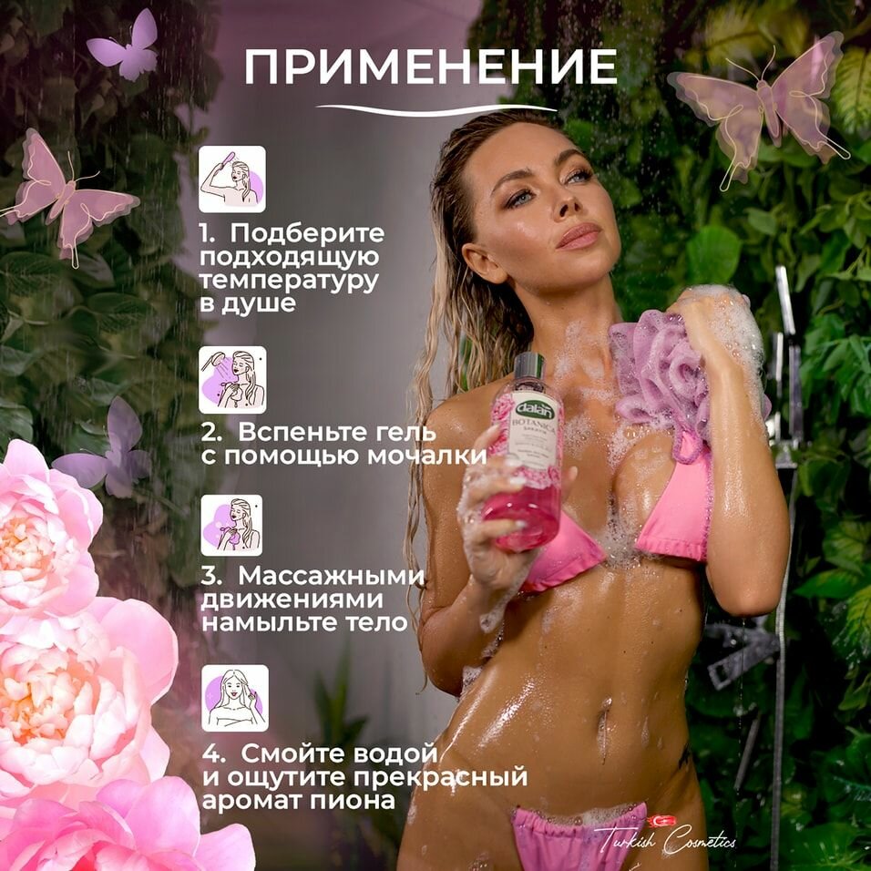 Компания DALAN предлагает линейку ароматизированных гелей для душа для натурального ухода за кожей тела каждый день. Гели для душа представлены в трех разновидностях: турецкий гель для душа пион, гель для тела Лотос и парфюмированный гель для душа Фрезия. Каждая разновидность обладает своими исключительными свойствами за счет натуральных компонентов и эфирных масел. Гели для душа с добавкой Пион могут использоваться и как увлажняющий гель для душа женский, и как гель для интимной гигиены, и как гель для тела для девочек. Пион обладает успокаивающими и расслабляющими свойствами, поэтому гель для тела Пион лучше всего использовать на ночь. Гель для душа органический с эфирным маслом Фрезии прекрасно справляется с раздражительностью и бессонницей. Аромат фрезии считается запахом аристократов и эфирное масло этого растения очень часто используют в дорогих духах и смесях для ароматерапии. Фрезия это аромат для взрослых, поэтому он не подойдет как гель для детей. Это, скорее, глубоко увлажняющий женский гель. Если вам нужен универсальный гель для душа, то гель для душа органический Лотос будет для вас идеальным решением. Лотос бодрит и настраивает на позитив, помогает в борьбе с депрессией и упадком сил. В состав всех гелей для душа от компании DALAN входят только натуральные компоненты: эфирные и косметические масла, экстракты растений, минералы и витамины. Благодаря натуральному составу турецкие гели для душа Botanica совершенно безвредны как для кожи, так и для септиков. Пенящиеся средства для гигиены всей семьи от Dalan смогут использоваться в качестве ежедневного уходового средства для проблемной кожи. Каждый компонент экологичной продукции DALAN Botanica помогает вашему телу жить в любви и заботе.Если вас заинтересовала другая турецкая эко косметика, то вы можете приобрести в нашем магазине Turkish Cosmetics разнообразные средства для ухода за телом: жидкое мыло, кремы и масла для лица и тела, душистое мыло для бани, шампуни и кондиционеры для волос. Также в нашем магазине появилась новая линейка продукции DALAN, представляющая экологичные стиральные порошки для всех типов белья.