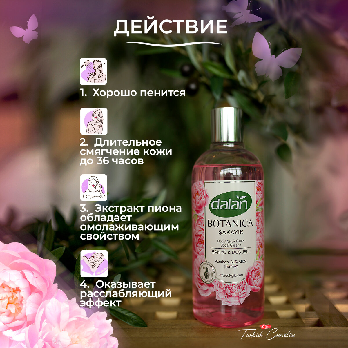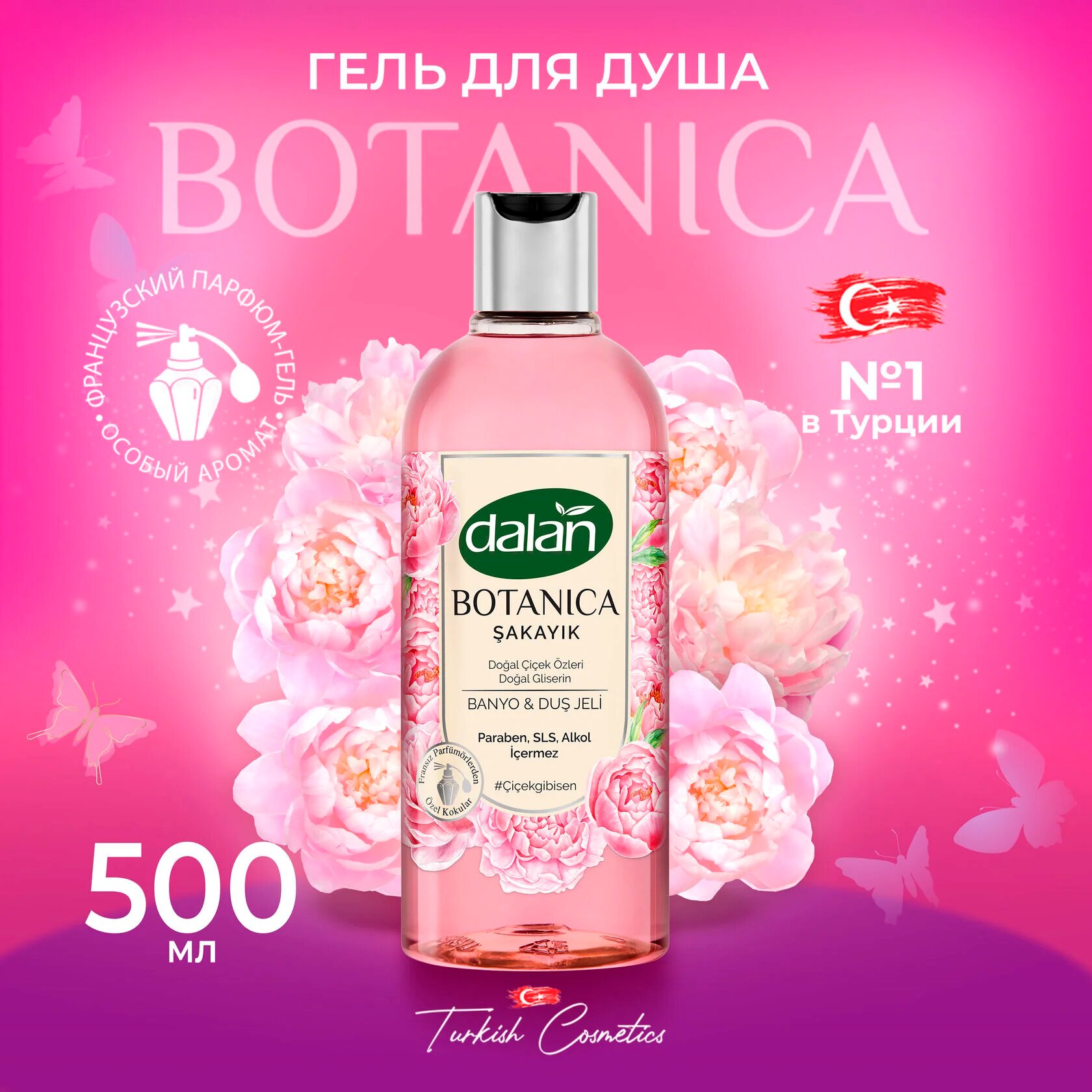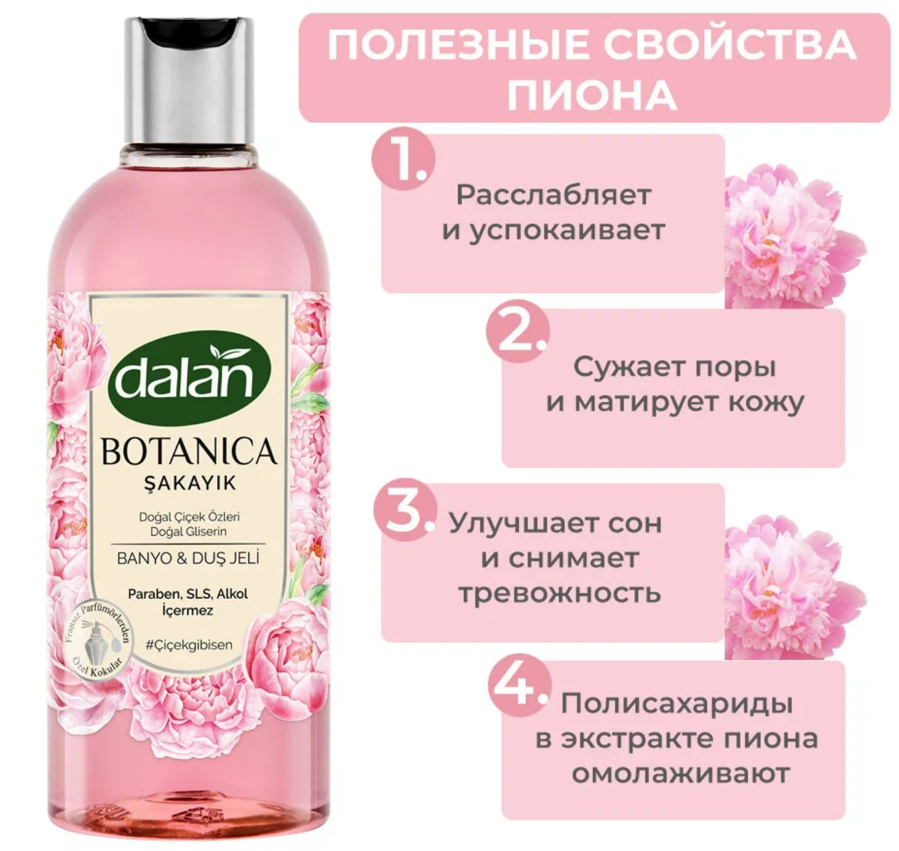 Гель для душа Dalan Botanica аромат пиона 500мл Dalan Kimya End. A.S.