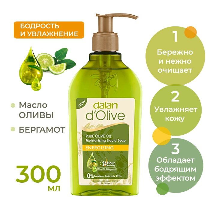 На сегодняшний день товар «Мыло жидкое Dalan d'Olive Восстанавливающее Оливковое масло и бергамот 300мл Dalan Kimya End. A.S.» можно купить с кешбеком в 1 магазине: Яндекс.Маркет