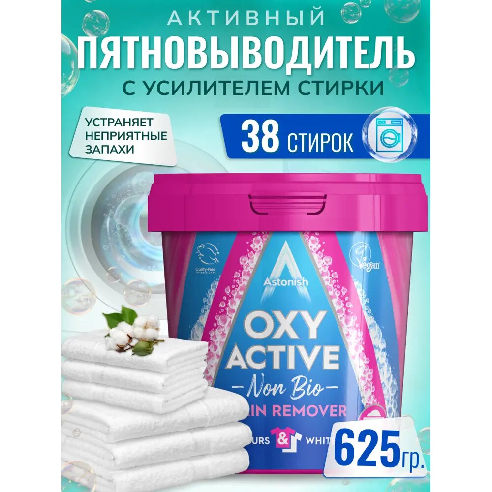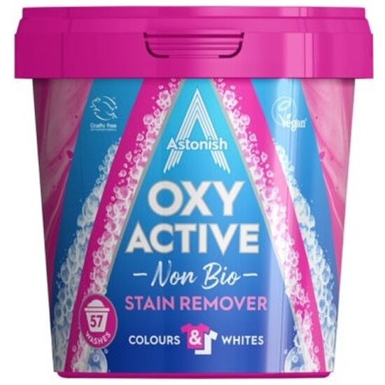 **Пятновыводитель для усиленной стирки Astonish** - средство с высокой эффективностью, которое позволяет быстро вернуть ткани прежний вид и придать ей свежесть. Может использоваться как для белого, так и для цветного белья. Средство без красителей, что позволяет избежать риска окрашивания. Может использоваться как для машинной стирки (нужно добавить в барабан или отделение для обычного порошка), так и для ручной. Кроме того, состав применяется для экспресс-обработки пятен.