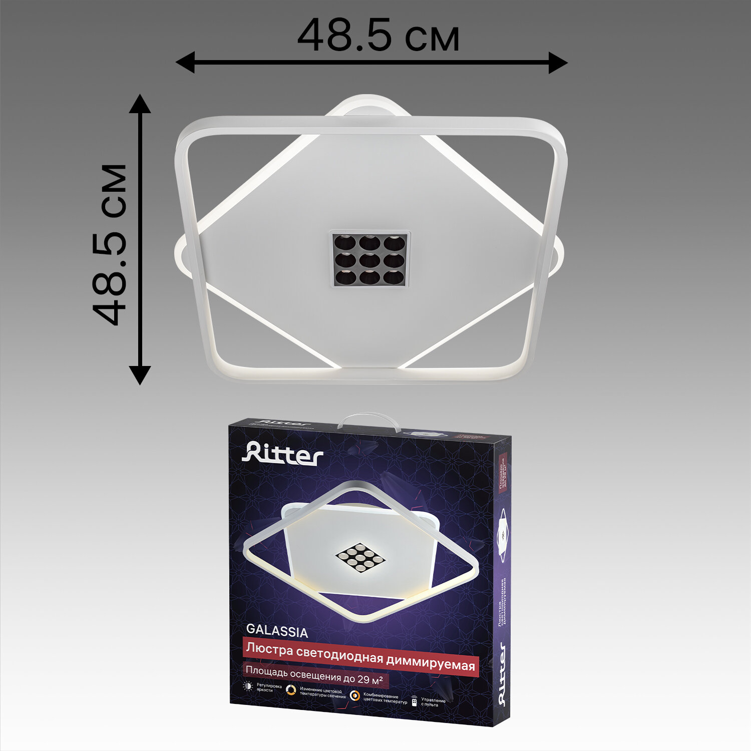На сегодняшний день товар «Люстра светодиодная «Galassia» 515856 с пультом управления 29 м² регулируемый белый свет цвет белый RITTER» можно купить с кешбеком в 1 магазине: Яндекс.Маркет