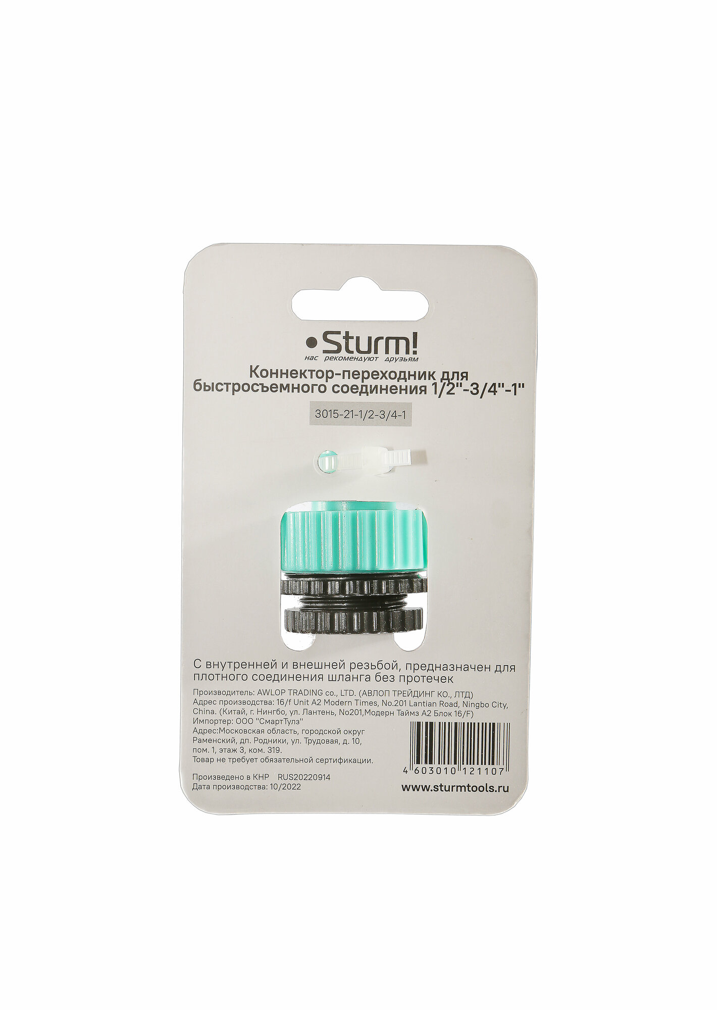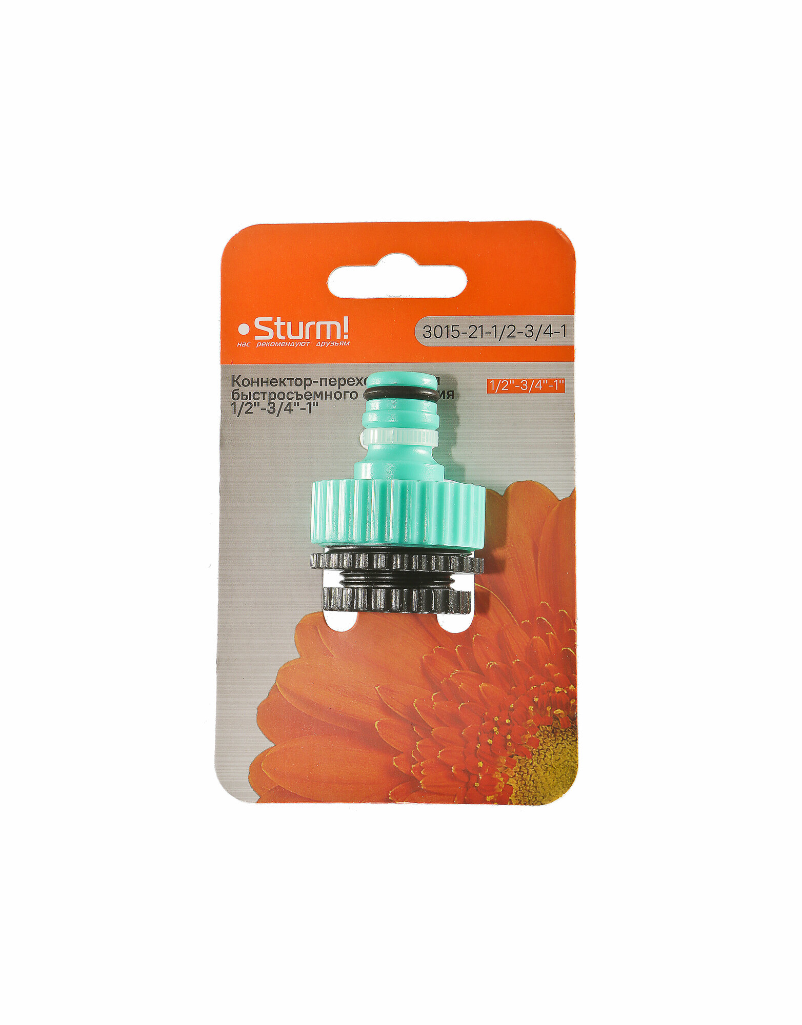 **Адаптер Sturm 3015-21-1/2-3/4-1** предназначен для шланга. Применяется в качестве связующего элемента. Помогает создать разветвленную оросительную систему на дачном участке, территории загородного или многоквартирного дома, в парковой зоне.