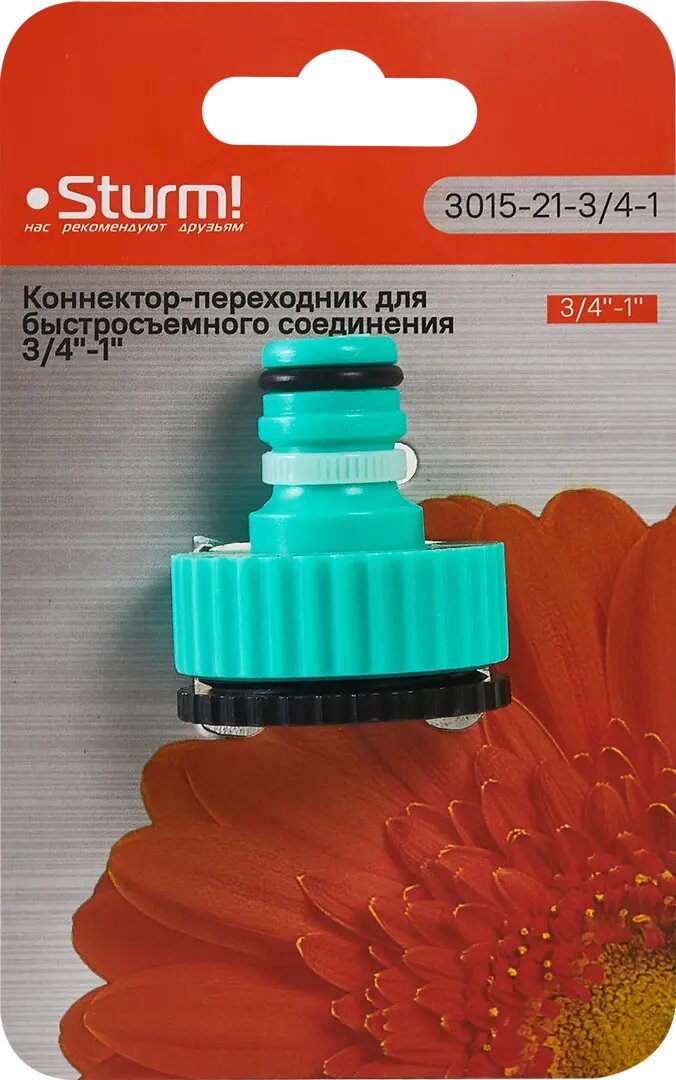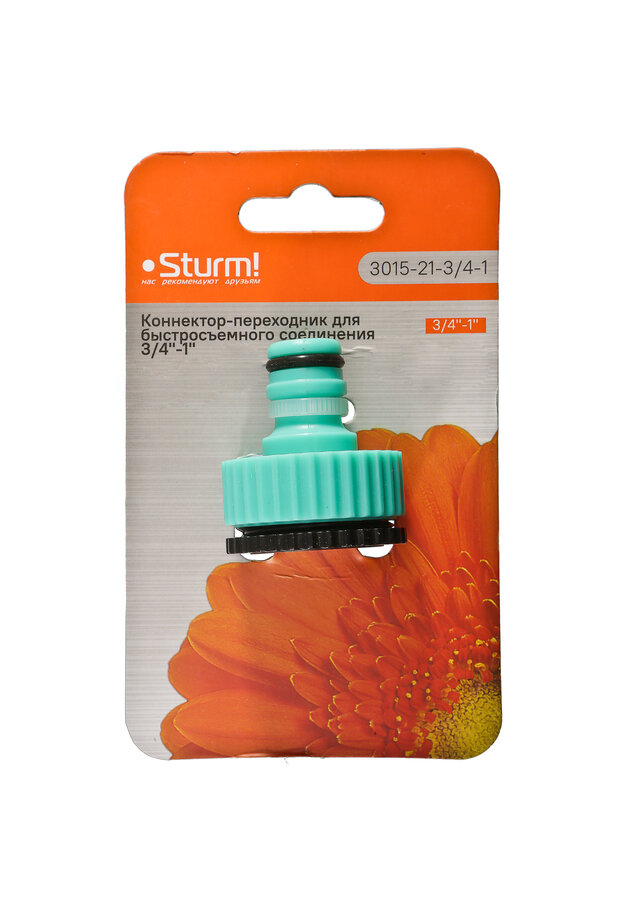 **Адаптер Sturm 3015-21-3/4-1** предназначен для шланга. Применяется в качестве связующего элемента. Помогает создать разветвленную оросительную систему на дачном участке, территории загородного или многоквартирного дома, в парковой зоне.