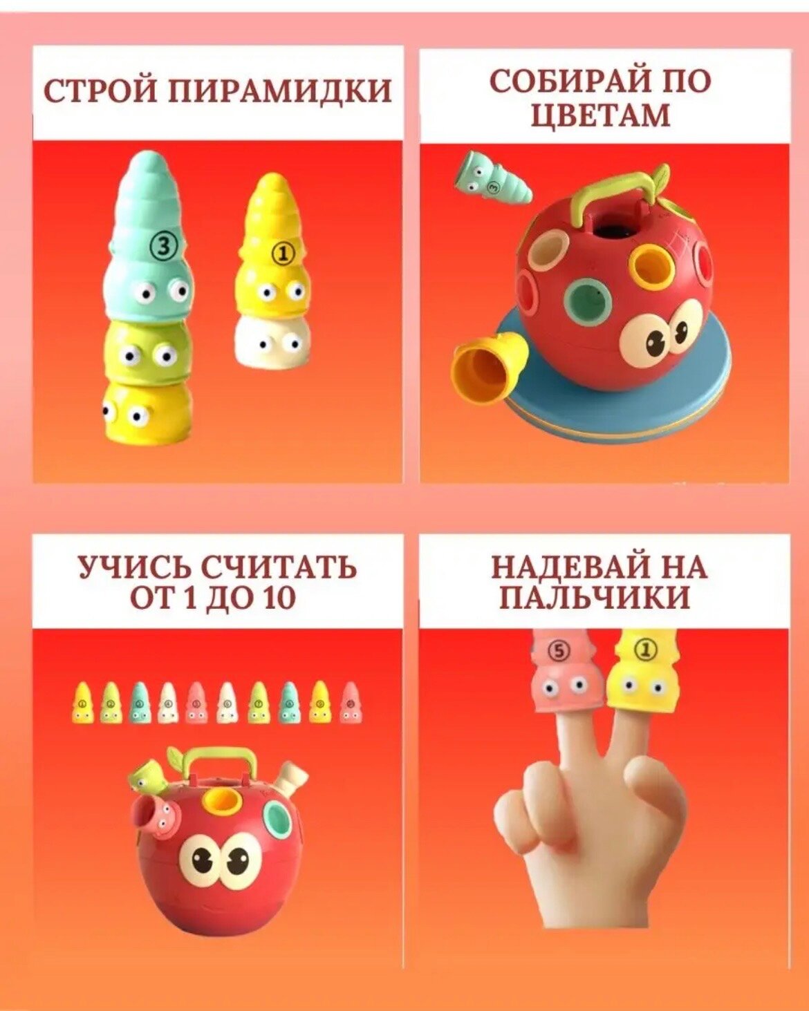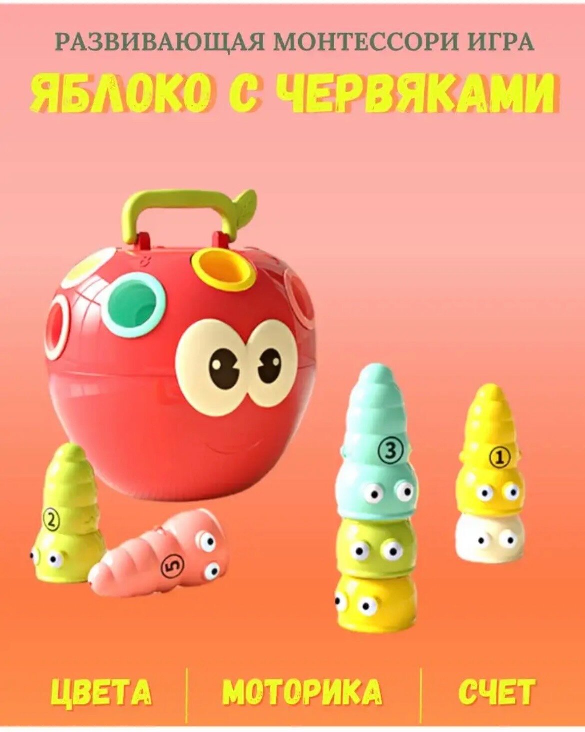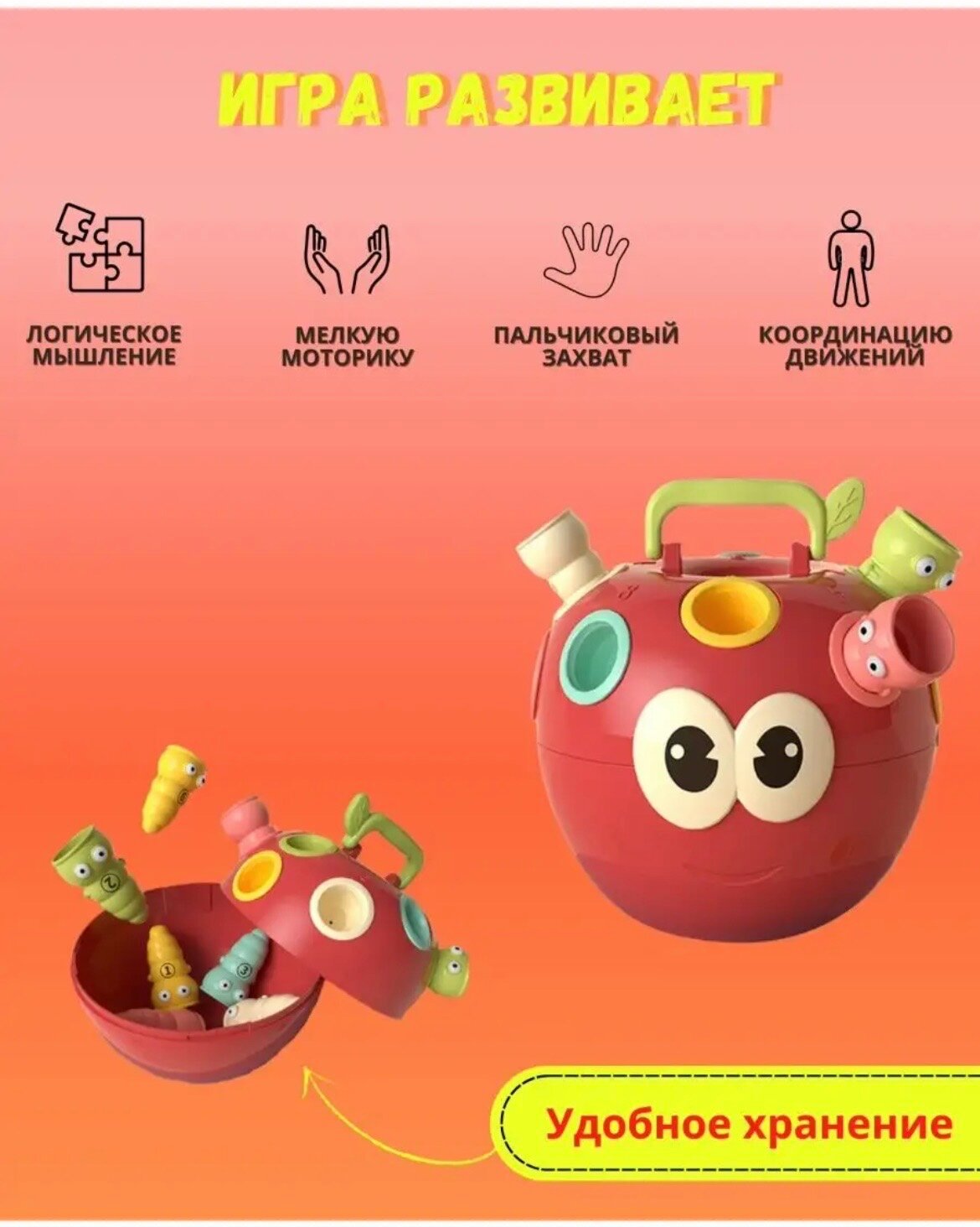 Невероятно увлекательный и полезный сортер для самых маленьких в виде яркого яблочка способствует развитию памяти, мелкой моторики рук и координации движений крохи.