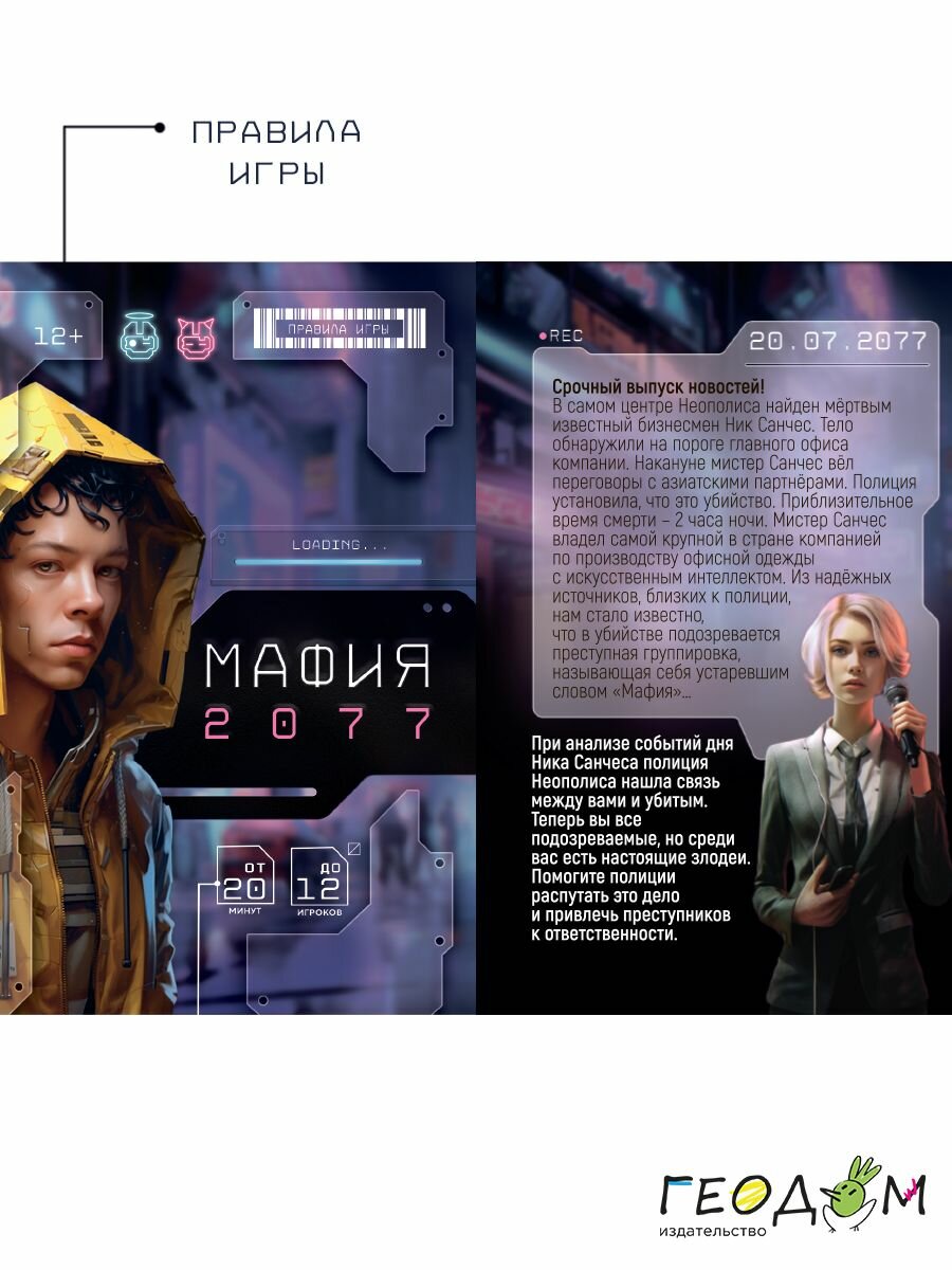 "Мафия-2077" - это новая версия всемирно известной игры с новыми возможностями! Задача игроков - вычислить злодеев в городе будущего. Здесь у каждого - своя цель, алиби и скрытая способность. Наблюдайте за подозреваемыми, используйте свои способности и принимайте решения, чтобы восстановить справедливость.