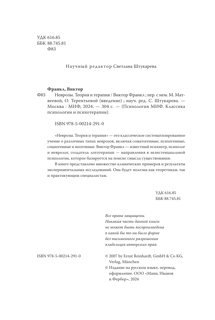 Неврозы. Теория и терапия (Виктор Эмиль Франкл); Манн, Иванов и Фербер, 2024
