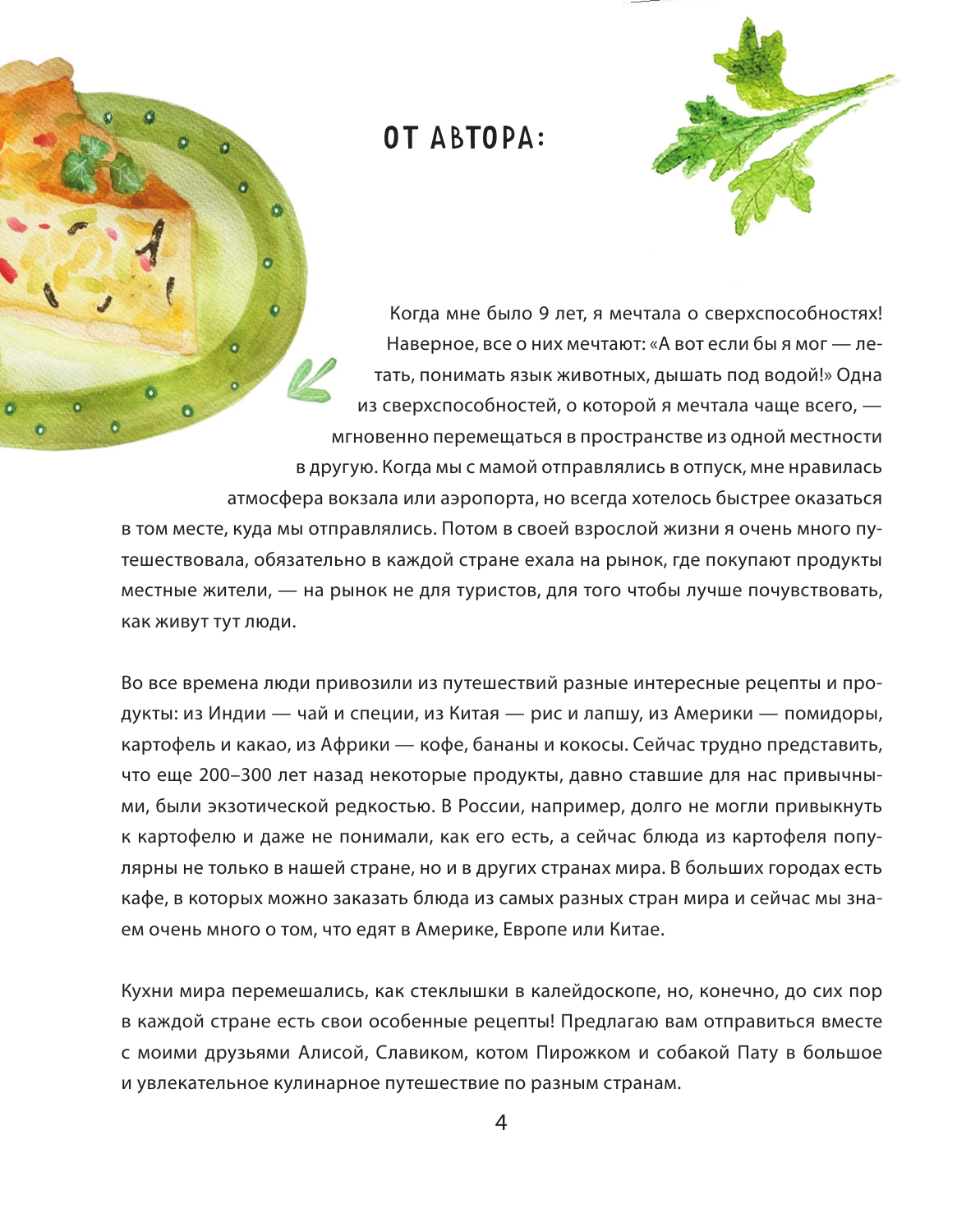 Уже давно кухни мира перемешались, как стеклышки в калейдоскопе, но, конечно, в каждой стране есть свои особенные рецепты, и именно они вошли в новую книгу Марии. Вас ждут более 40 рецептов со всех уголков планеты, о которых вы узнаете, если осмелитесь пуститься в большое и увлекательное кулинарное путешествие вместе с маленькими героями Алисой, Славиком, собакой Пату и котом Пирожком.