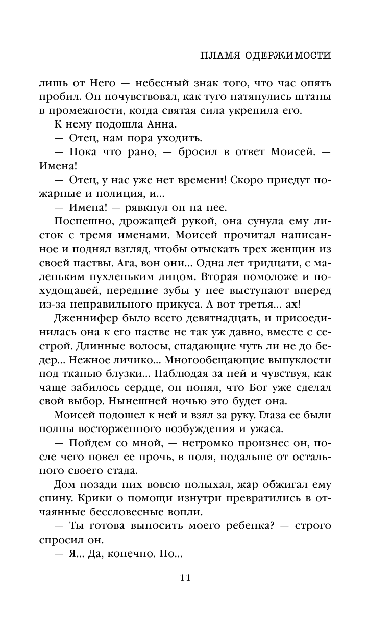 Тем временем поджоги заинтересовали ФБР, и на след Моисея встает гроза серийных убийц, гениальный профайлер Зои Бентли. Прежде Зои не приходилось иметь дела с сектантами. Ей нужен тот, кто понимает мысли Моисея, – кто-то вроде Эбби Маллен…