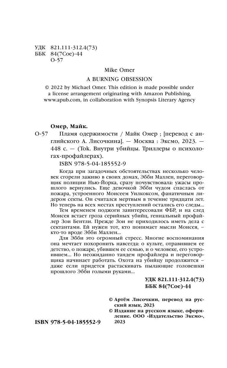 Книга: Пламя одержимости (Майк Омер); Эксмо, Inspiria, Редакция 1, 2023