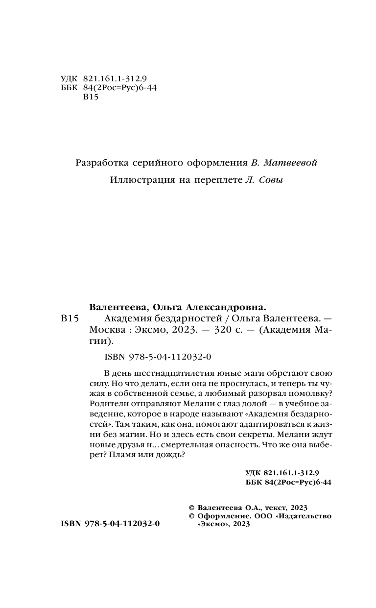 Книга: Академия бездарностей (Ольга Валентеева); Эксмо, Редакция 1, 2023