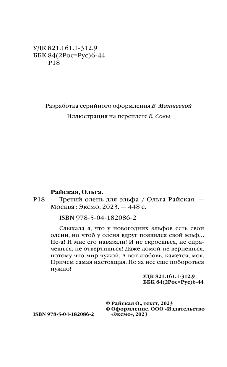 Книга: Третий олень для эльфа (Ольга Райская); Эксмо, Редакция 1, 2023