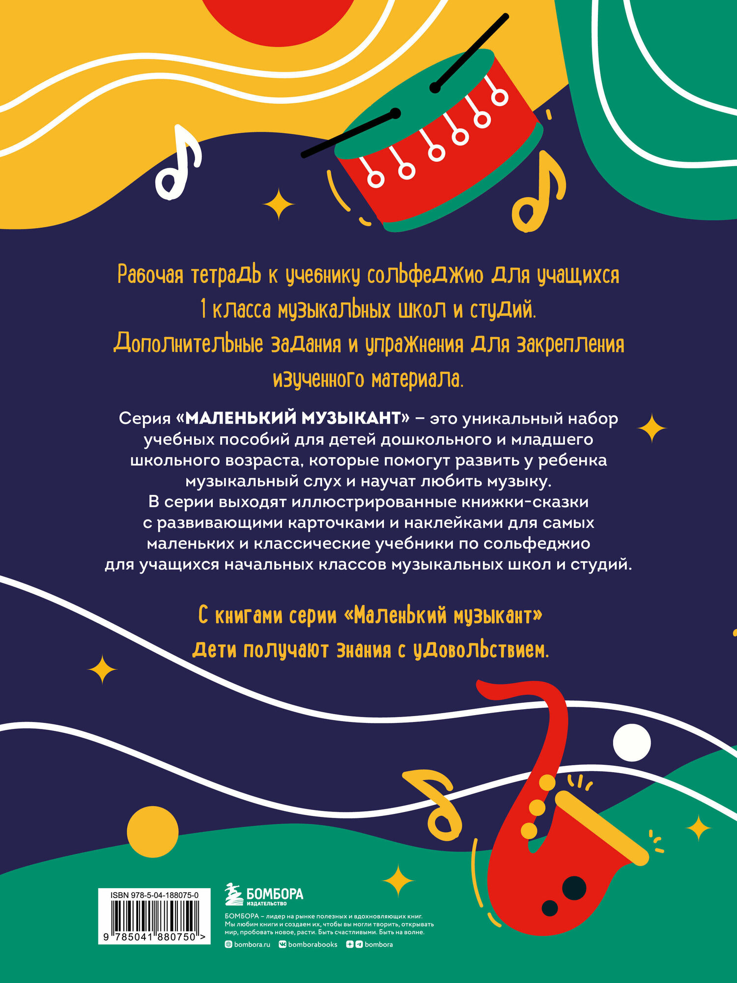 Серия "Маленький музыкант" - это уникальный набор учебных пособий для детей дошкольного и младшего школьного возраста, которые помогут воспитать у ребенка музыкальный слух и научат любить музыку. В серии выходят иллюстрированные книжки-сказки с развивающими карточками и наклейками для самых маленьких и классические учебники по сольфеджио для учащихся начальных классов музыкальных школ и студий. С книгами серии "Маленький музыкант" дети получают знания с удовольствием.