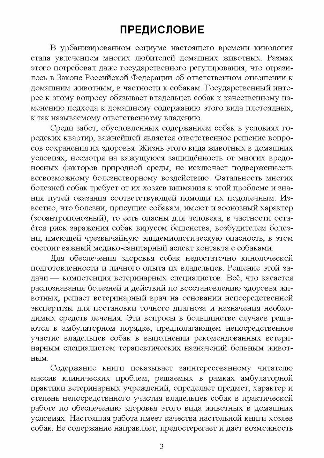 Содержание предлагаемого книжного издания позволяет заинтересованному читателю ознакомиться с объемом клинических проблем, решаемых в рамках амбулаторной практики ветеринарных клиник, и даёт возможность получить консультативную помощь по вопросам ответственного отношения к собакам, в целях обеспечения их здоровья. В книге даны сведения о широком круге болезней, травм и причин смерти собак, включенных в международную номенклатуру болезней данного вида плотоядных животных.
