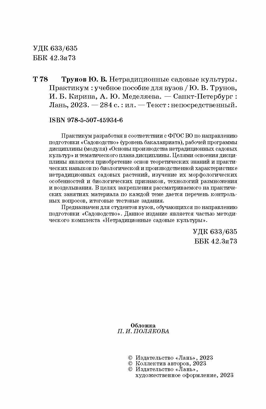 Нетрадиционные садовые культуры. Практикум. Учебное пособие для вузов (Трунов Юрий Викторович, Кирина Ирина Борисовна, Меделяева Анна Юрьевна); Лань, 2023