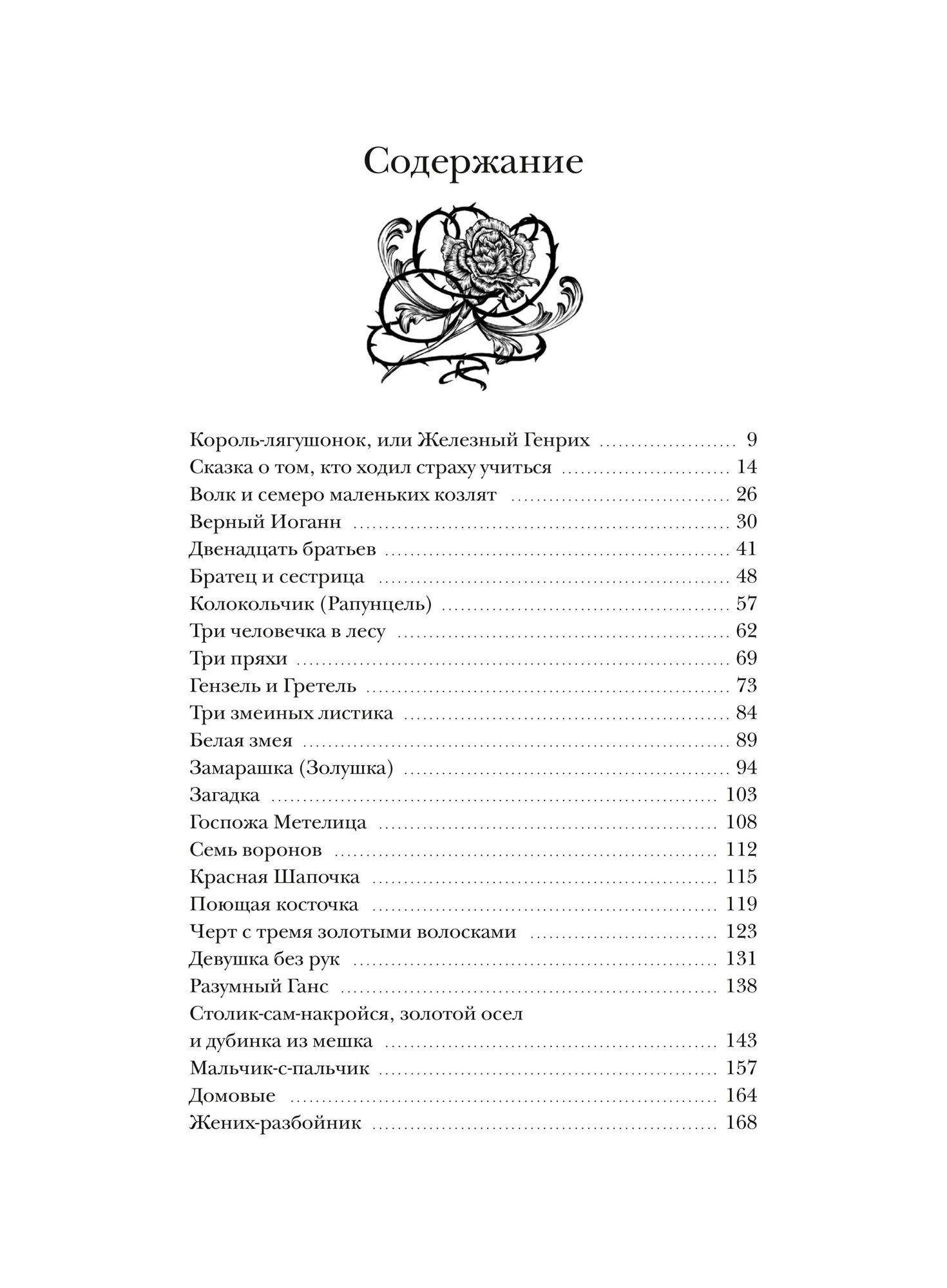 В этом сборнике братьев Гримм оживают зловещие легенды средневековой Германии: прелестная Золушка жестоко отомщена таинственной силой; возлюбленный Рапунцель ослеплен (и не только красотой нареченной); жених-каннибал готовит для невесты обручение со смертью, а по округе бродит зловещий карлик Румпельштильцхен, заключая дьявольские сделки…