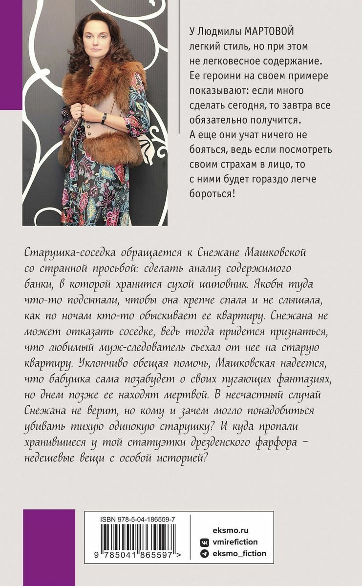 Людмила Мартова родилась, выросла и всю жизнь живет в Вологде, поэтому действие ее романов обычно разворачивается в российской глубинке. Ее героини - женщины, волею обстоятельств вынужденные становиться сильными и решительными. Они находят выход из любой самой сложной ситуации и, конечно, как и все, мечтают о счастье.