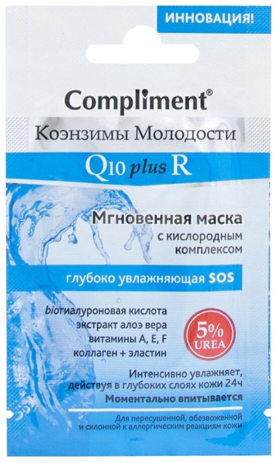 Маска глубоко увлажняющая с кислородным комплексом SOS Q10+R Коэнзимы молодости Compliment/Комплимент саше 7мл ООО ТИМЕКС ПРО (1582840)