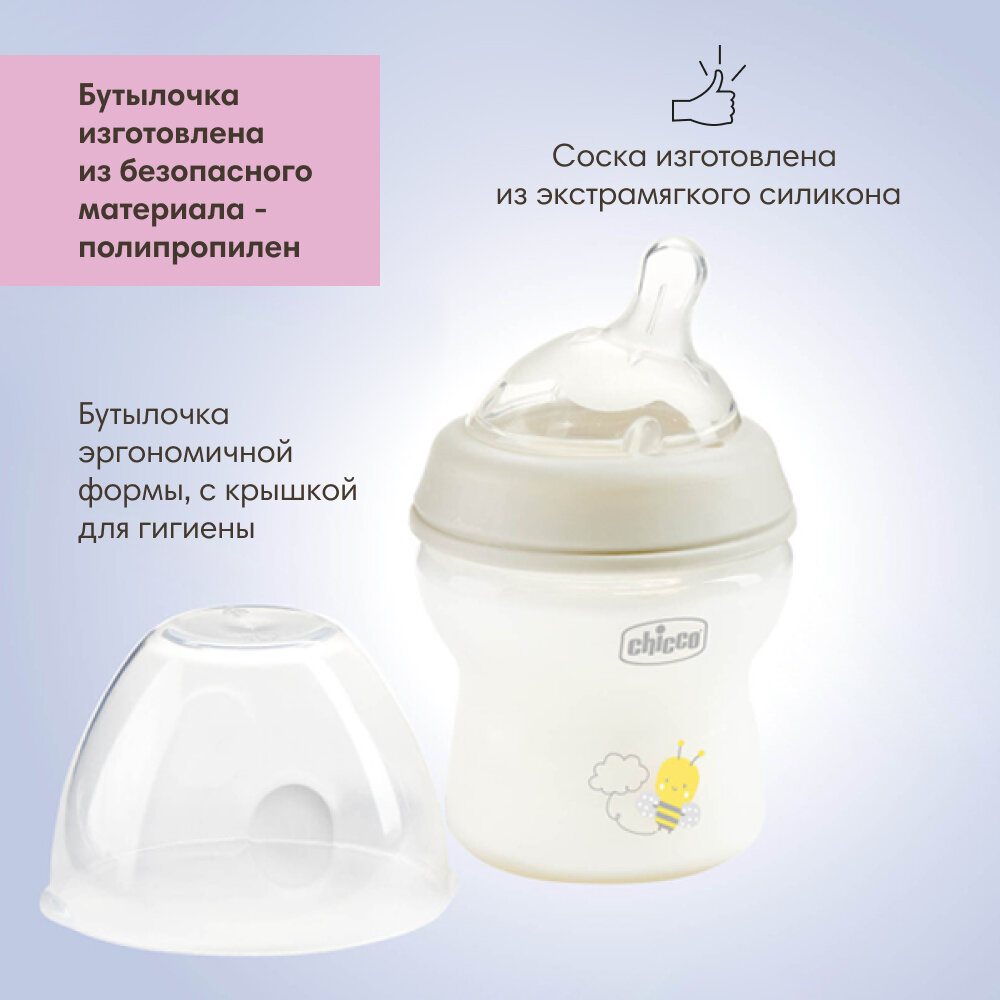 Бутылочка с силиконовой соской с флексорами голубая от 0 мес. Natural Feeling Chicco/Чикко 150мл Artsana S.p.A (1430502)