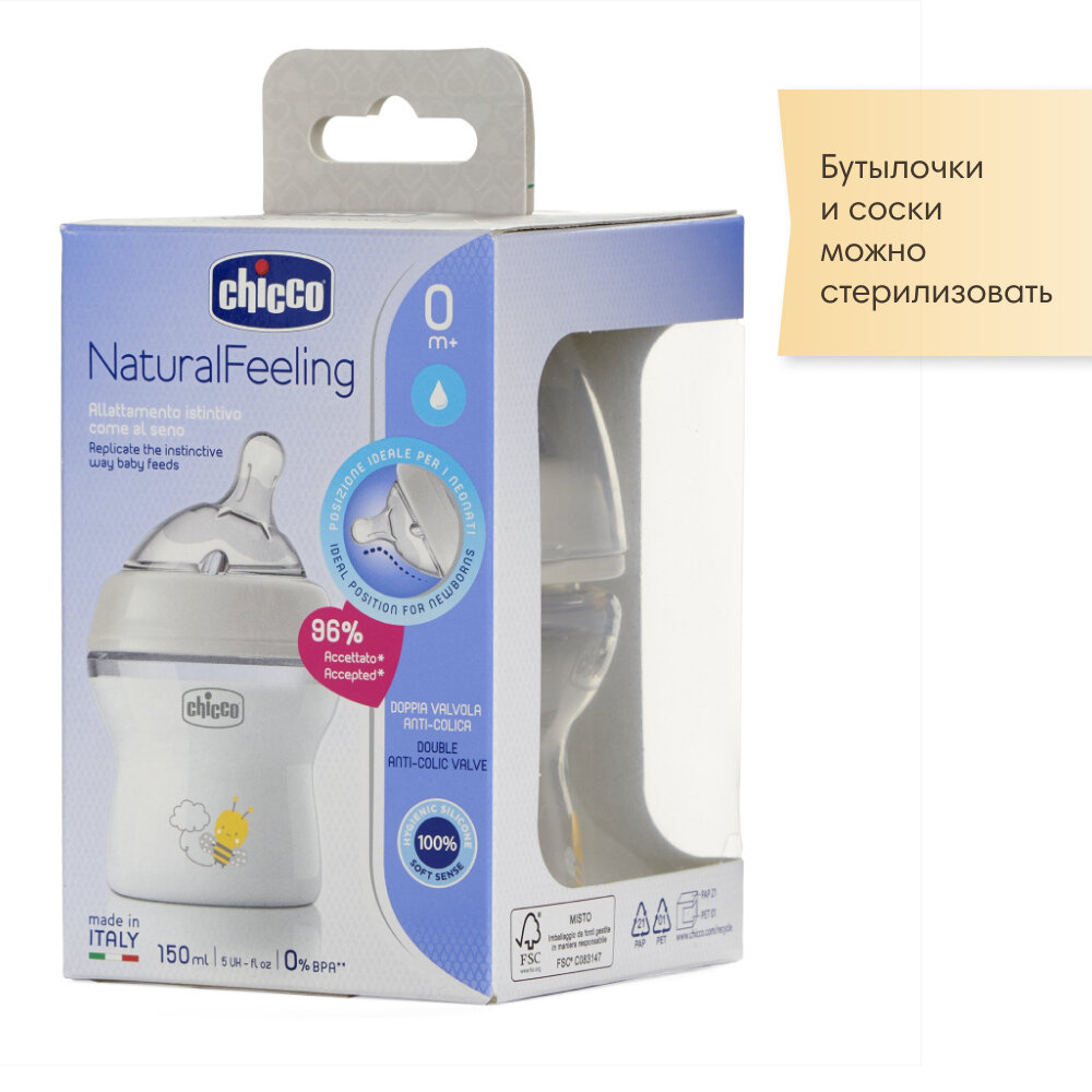 На сегодняшний день товар «Бутылочка с силиконовой соской с флексорами голубая от 0 мес. Natural Feeling Chicco/Чикко 150мл Artsana S.p.A (1430502)» можно купить с кешбеком в 1 магазине: Яндекс.Маркет